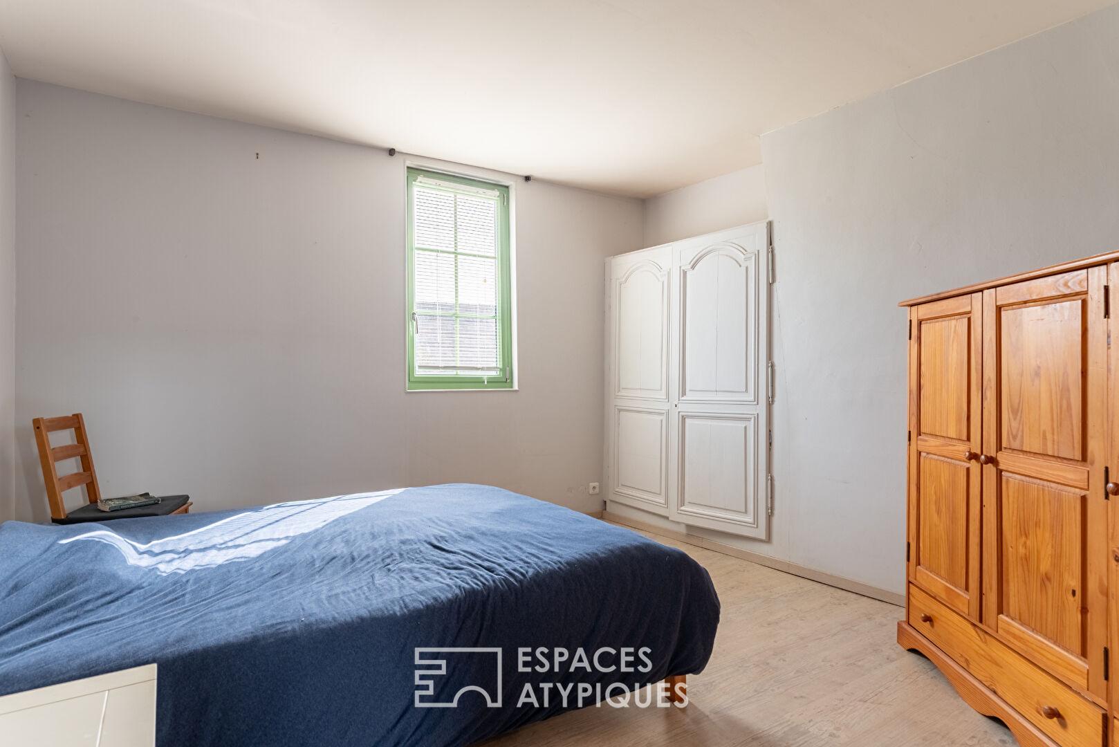 L’étage accueille une chambre et une salle de douche, formant un ensemble pouvant convenir pour recevoir, exercer une activité indépendante ou envisager un projet locatif.