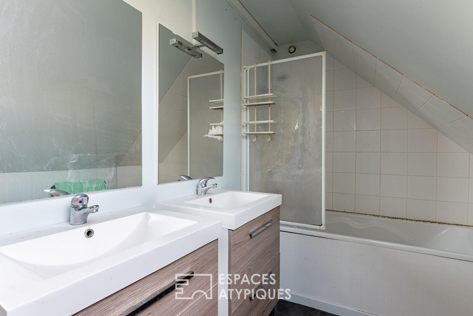 Une salle de bain dessert cet étage.