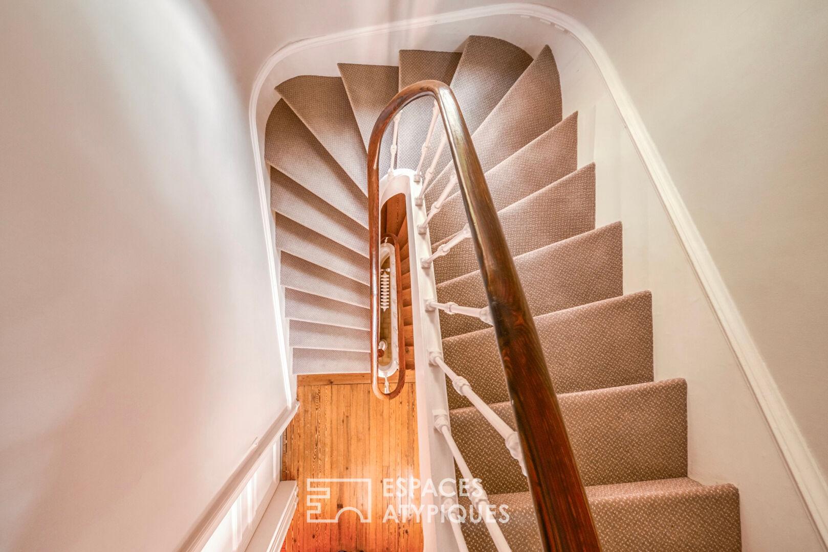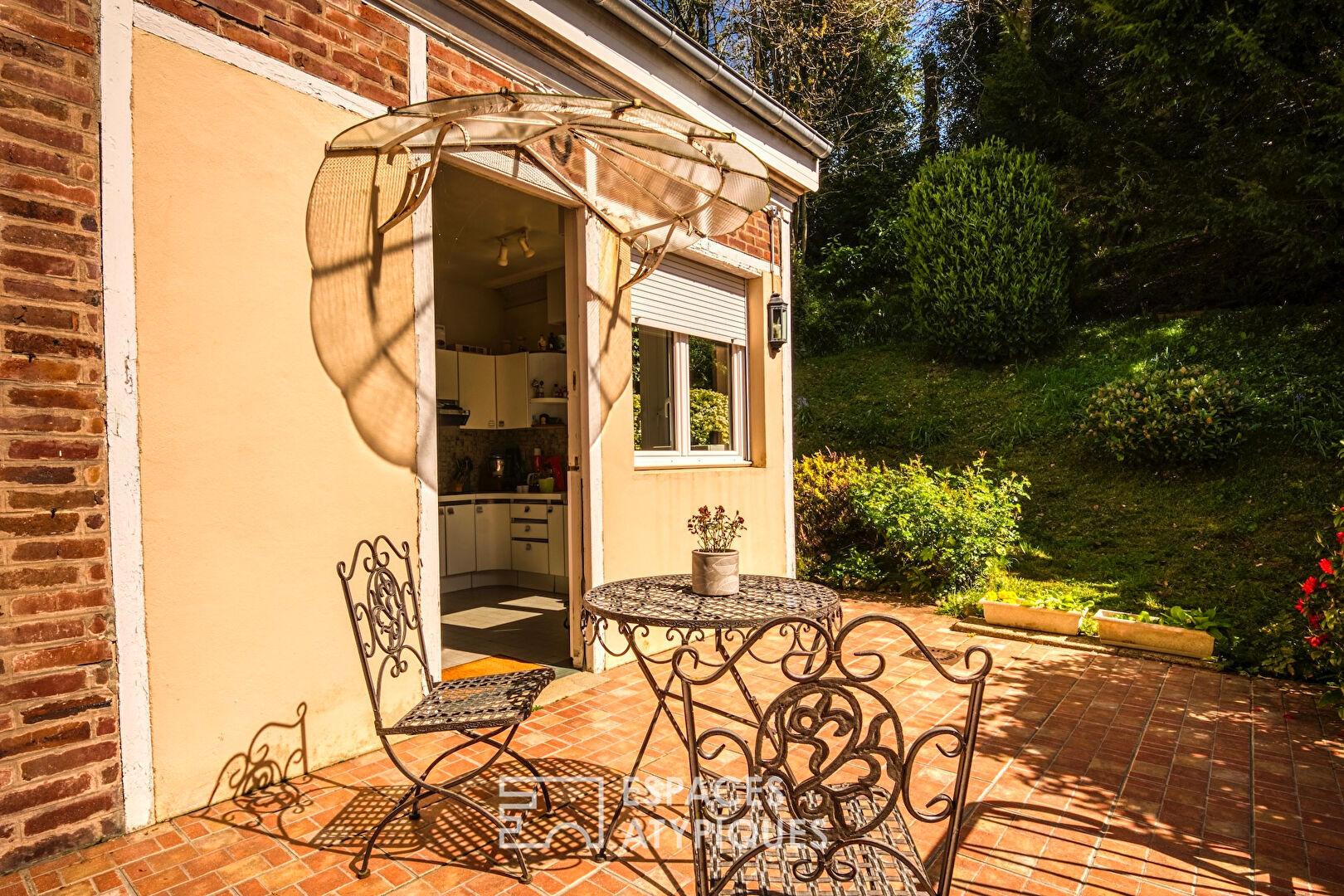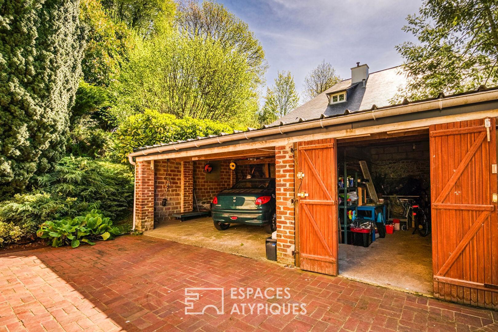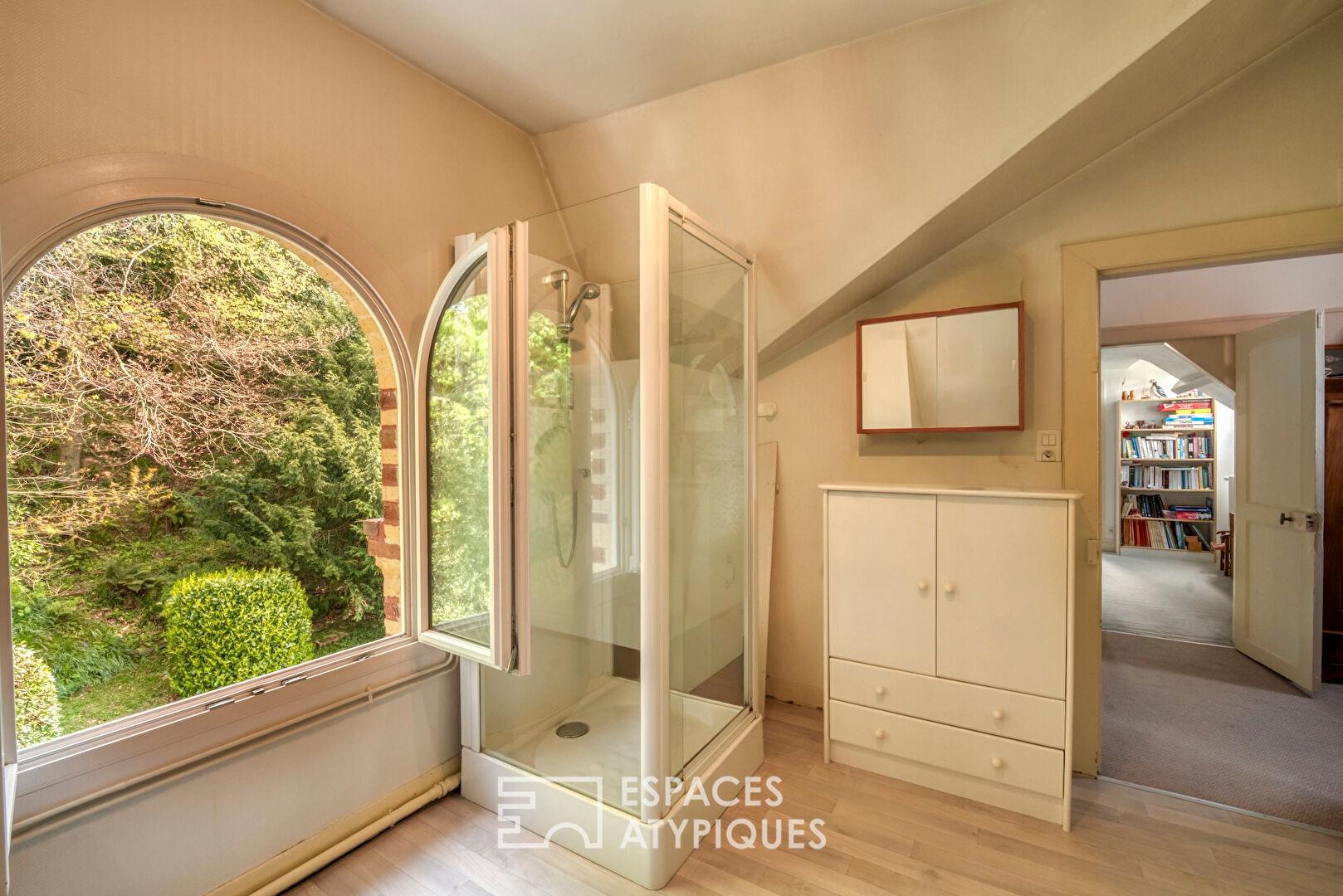Se révélant discrète et confidentielle, cette villa d’époque ne dévoile sa jolie façade en briques rouges et jaunes qu’au-delà d’un large portail s’ouvrant sur un parc arboré de 1800 m².