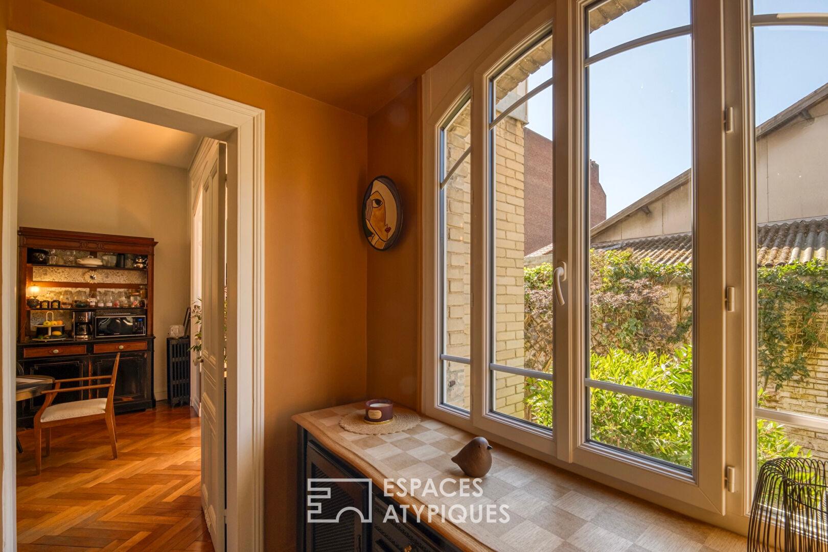 Positionné au rez-de-chaussée surélevé d’une belle demeure bourgeoise, aujourd’hui transformée en copropriété, ce bien rare se distingue par sa cour végétalisée privative parfaitement ensoleillée, restant à l’abri des regards. Un luxe discret en milieu urbain qui invite à la détente dès les premiers beaux jours.