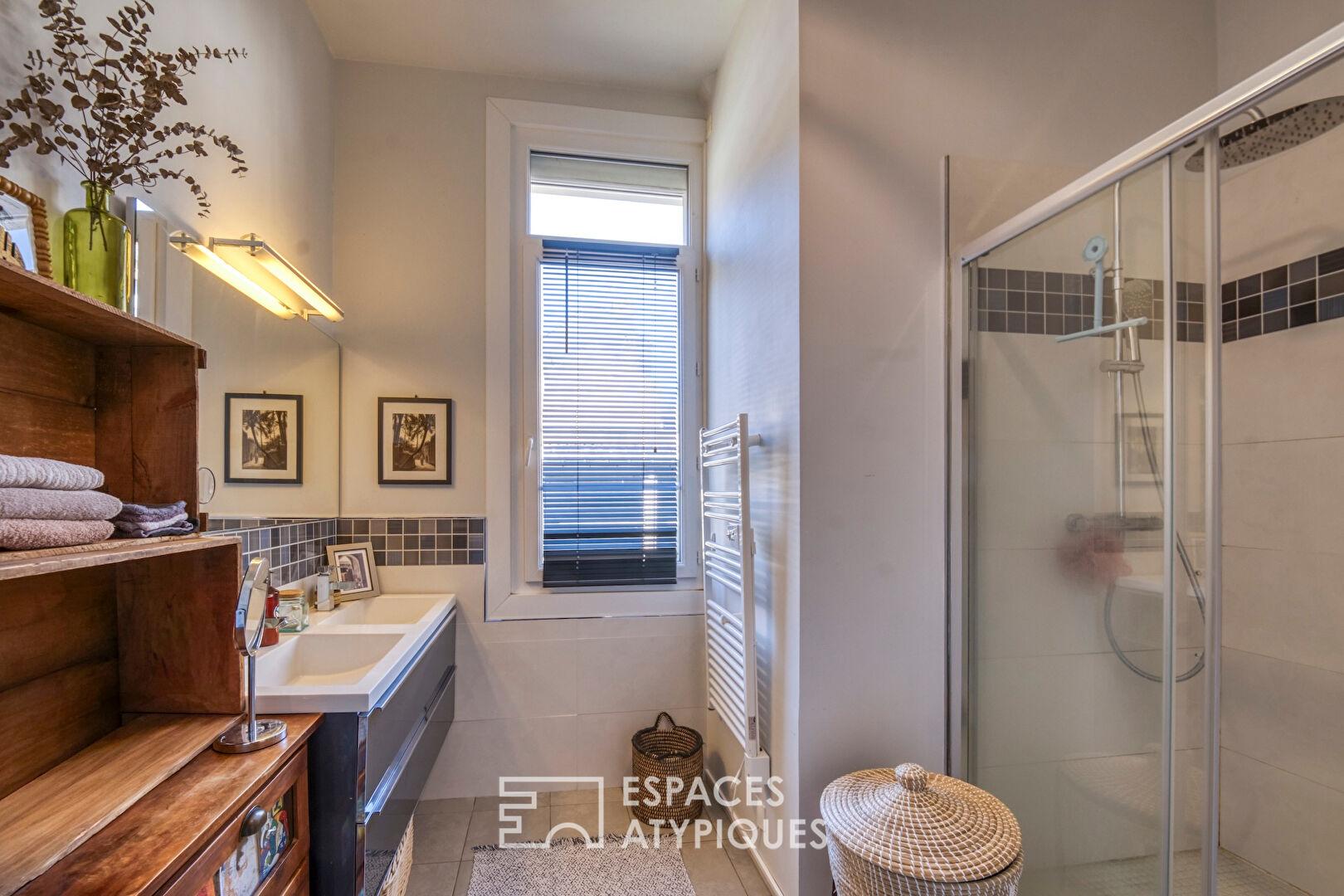 Côté nuit, trois petites chambres paisibles dont deux avec le lit en mezzanine se partagent une salle de douche contemporaine et un wc indépendant.