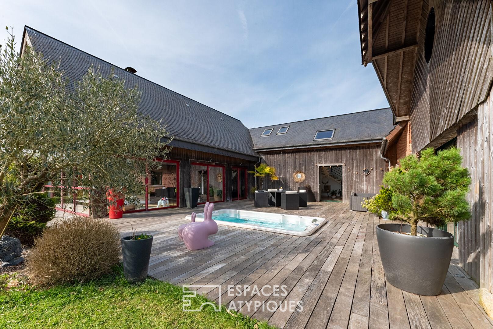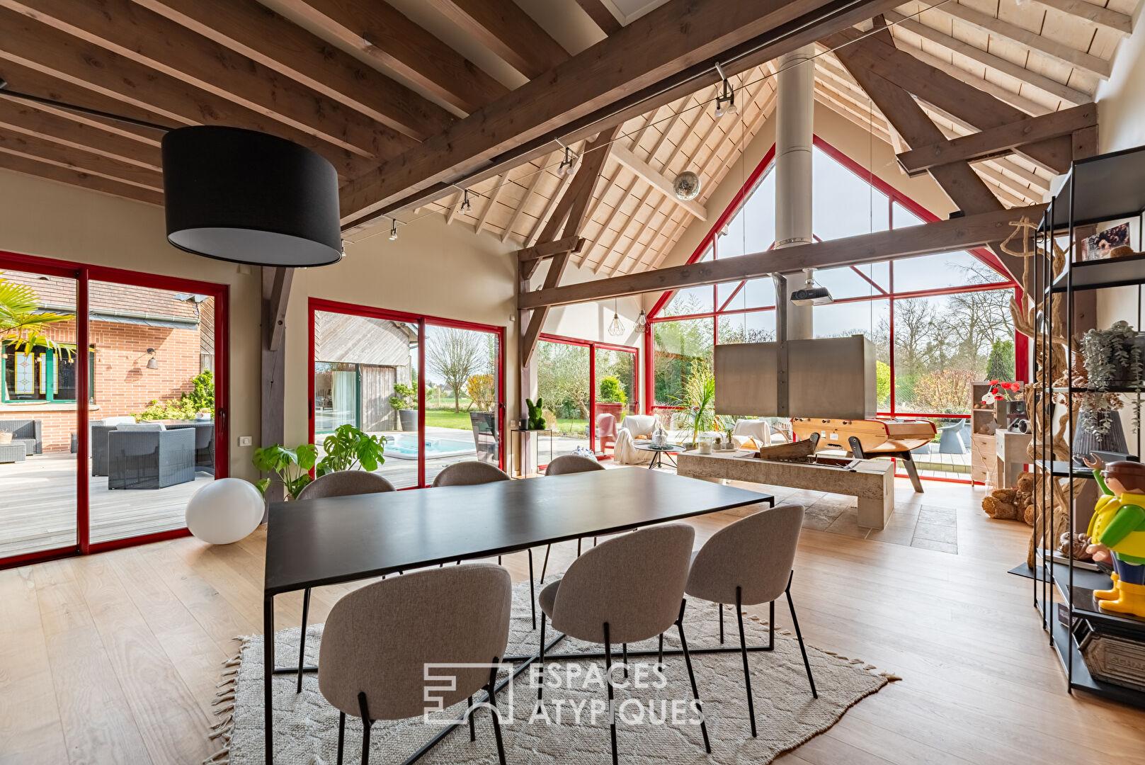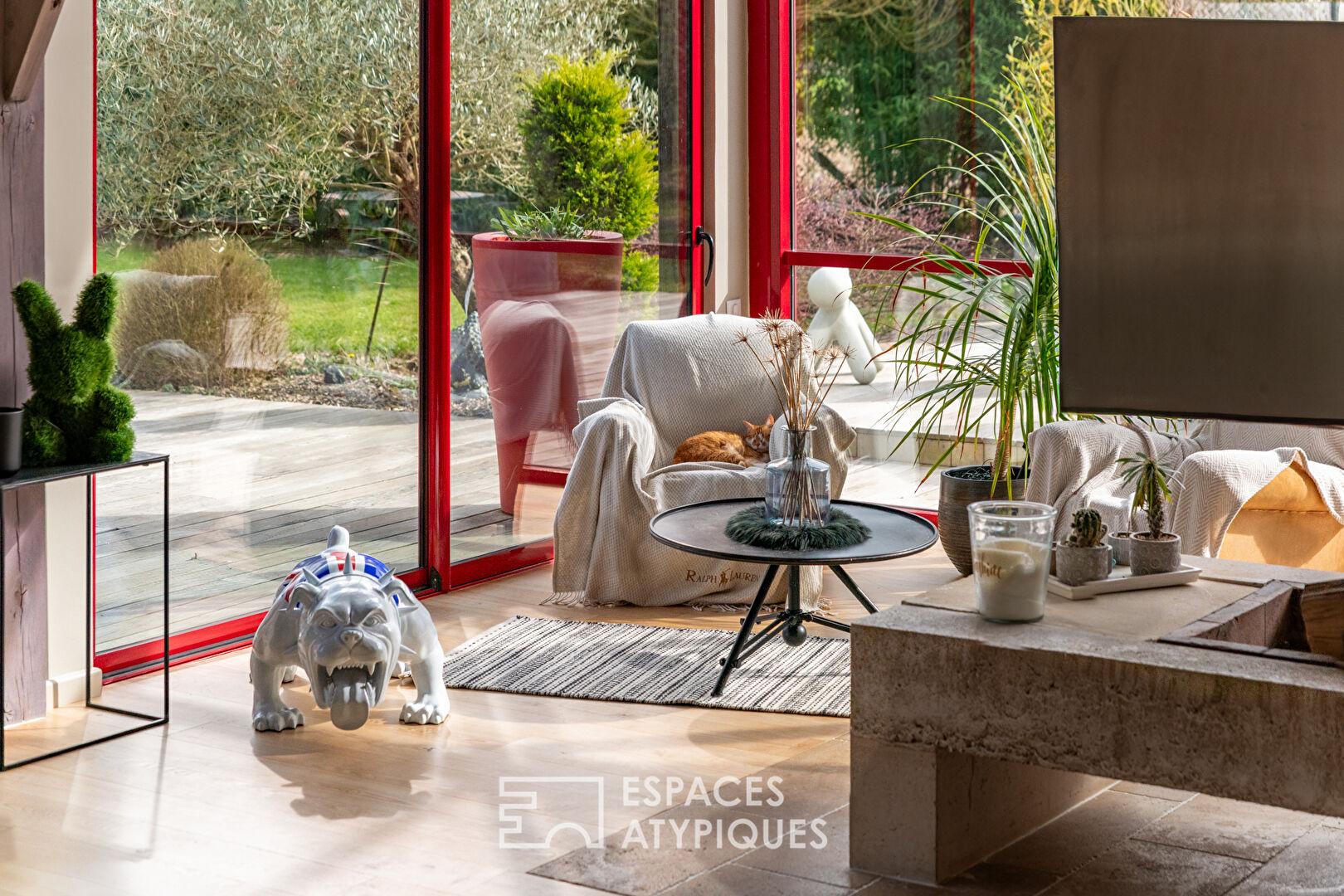 Ancienne grange revisitée par un architecte avec extension contemporaine