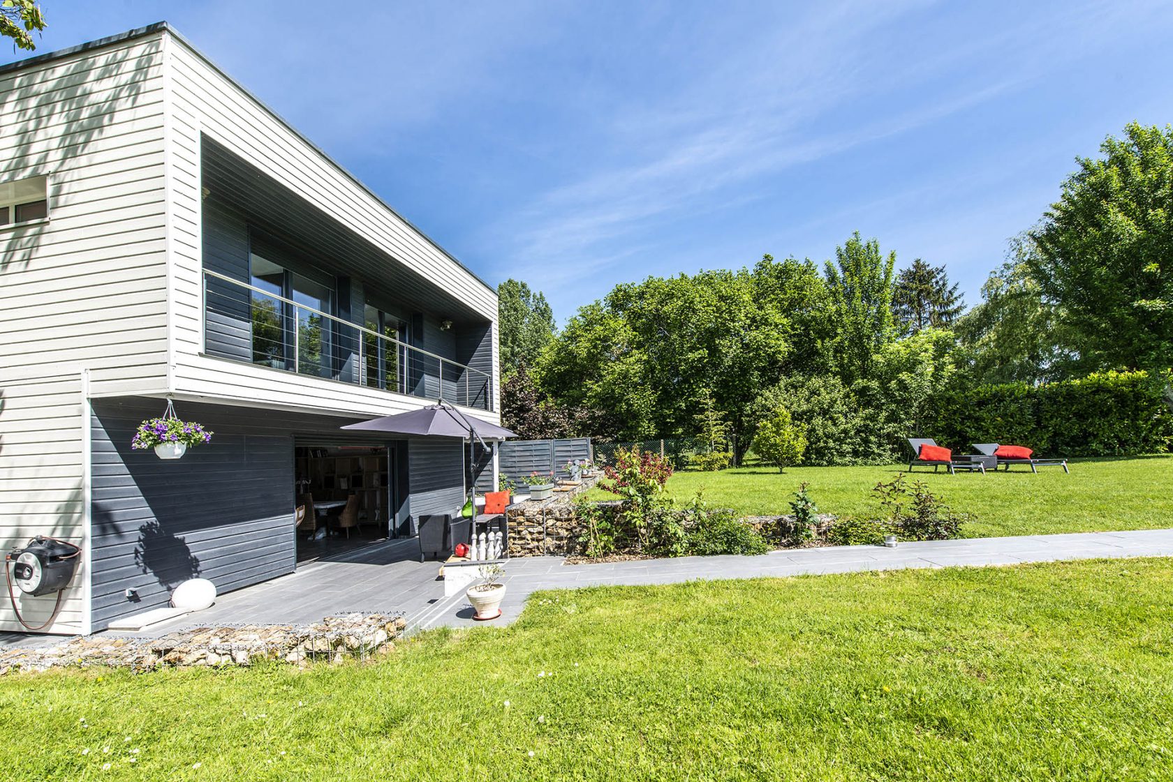 La bâtisse datant de 1870 a bénéficié d’une extension en 2016, résolument moderne par ses couleurs, ses grandes ouvertures et son toit plat. D’une surface habitable d’environ 190m2, elle est composée d’une grande pièce de vie de 58m2 conviviale et lumineuse par la présence d’une baie à galandage donnant la sensation d’être dehors avec accès direct sur la terrasse et au jardin. Une spacieuse cuisine avec îlot central profite également d’une terrasse. Une chaleureuse suite parentale avec son parquet bambou et son insert, agrémentée d’un dressing et d’une salle de bains complète le rez-de-chaussée. Un bel escalier industriel réalisé sur mesure mène à l’étage composé d’une suite parentale, d’un bureau et d’une chambre jouissant d’un balcon offrant une vue imprenable sur le jardin.