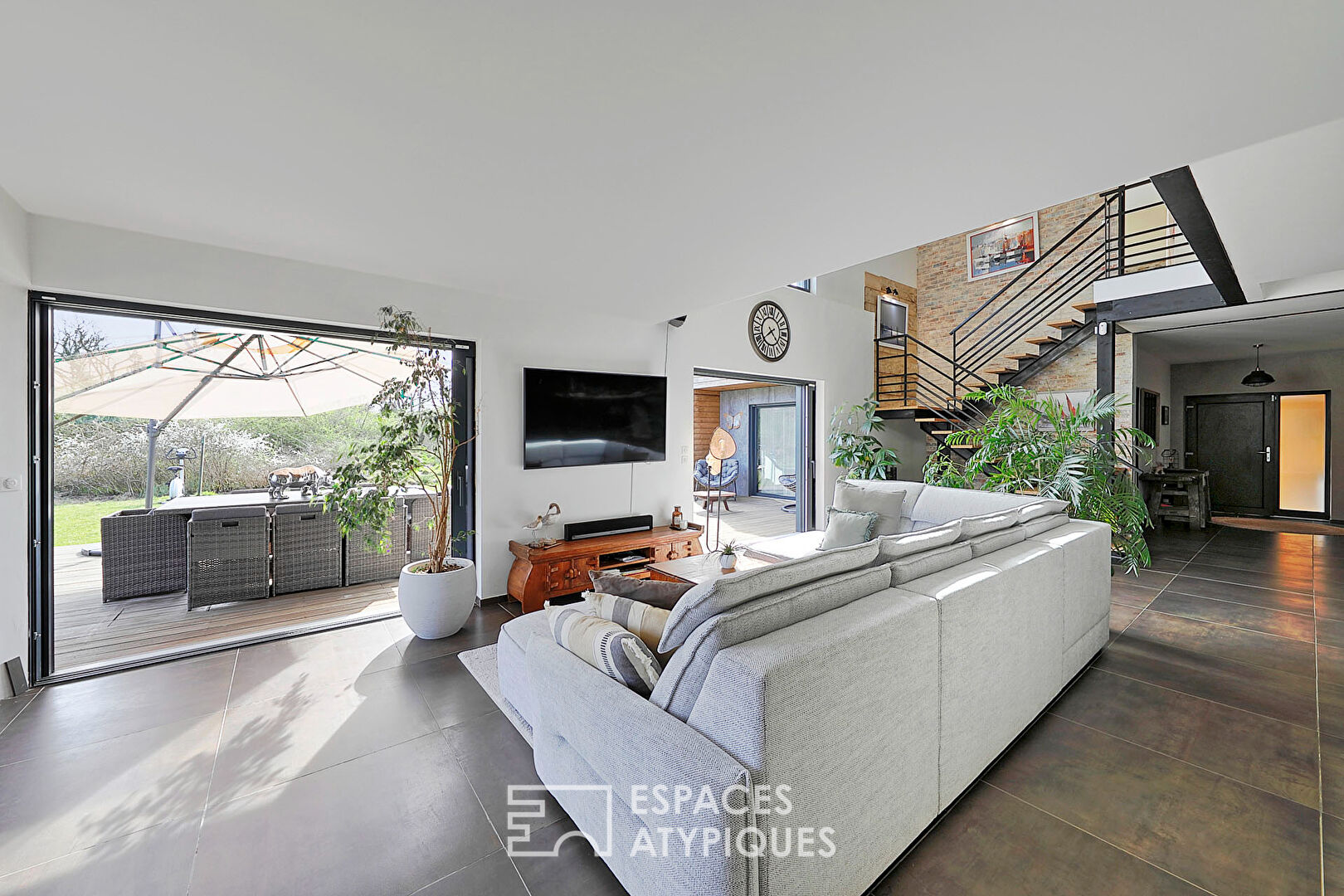 L’espace se prolonge naturellement vers une salle à manger et un salon chaleureux.