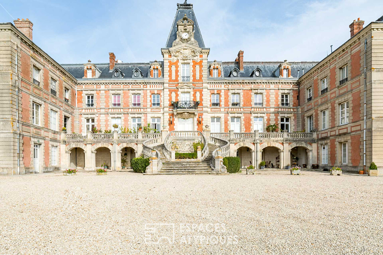 Accueilli par un perron avec escalier en fer-à-cheval, on découvre au premier étage, ce bien d’exception qui bénéficie d’une vue imprenable à 360° sur le parc, un haras et la rivière l’Ecole.