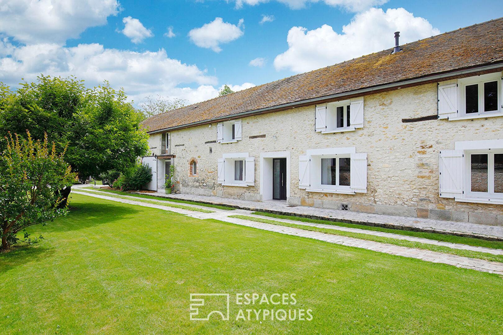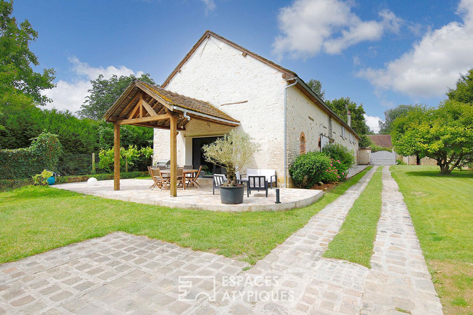 A 30km au Sud Est de Fontainebleau, située dans une rue calme sur la commune de Montigny-Lencoup, cet ancien corps de ferme entièrement repensé et rénové par les propriétaires actuels offre une surface habitable de 289m2. Il est édifié sur une parcelle de près de 1900m2 à l’abri des regards.