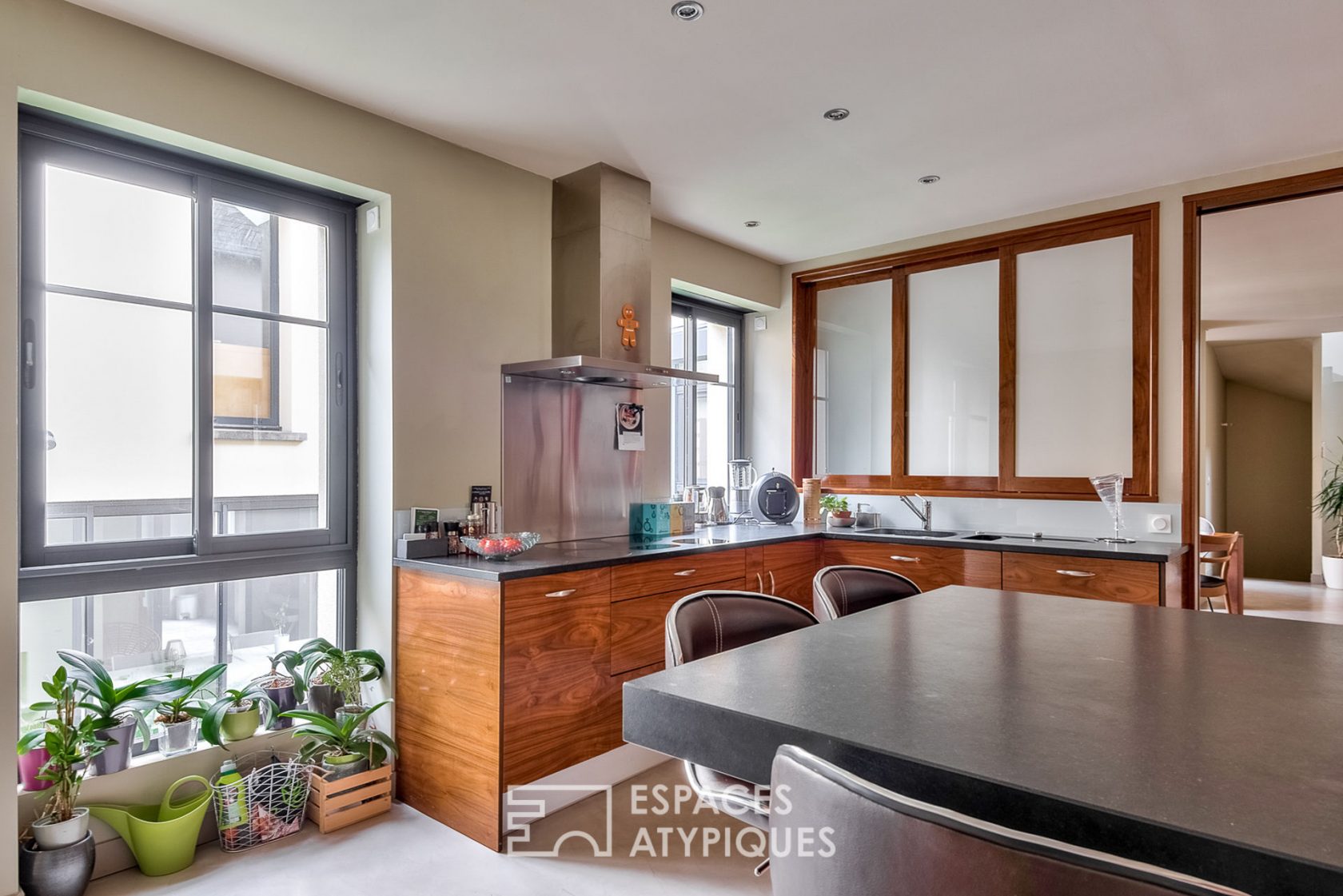 Une situation de rêve, à quelque pas de l’école privé de Saint Jean Hulst, une des institutions du quartier avec la seconde qui est la boulangerie Bigot et à 10 minutes à pied de la gare Rive-droite de Versailles, cachée derrière un mur et située dans une petite rue calme qui donne l’impression d’être au coeur d’un village, cette maison totalement réhabilitée en 2004 par un architecte propose une distribution intelligente qui tire parti au maximum de la surface du terrain. Une cour intérieure allie un espace paysagé et une zone dédiée aux repas en extérieur.