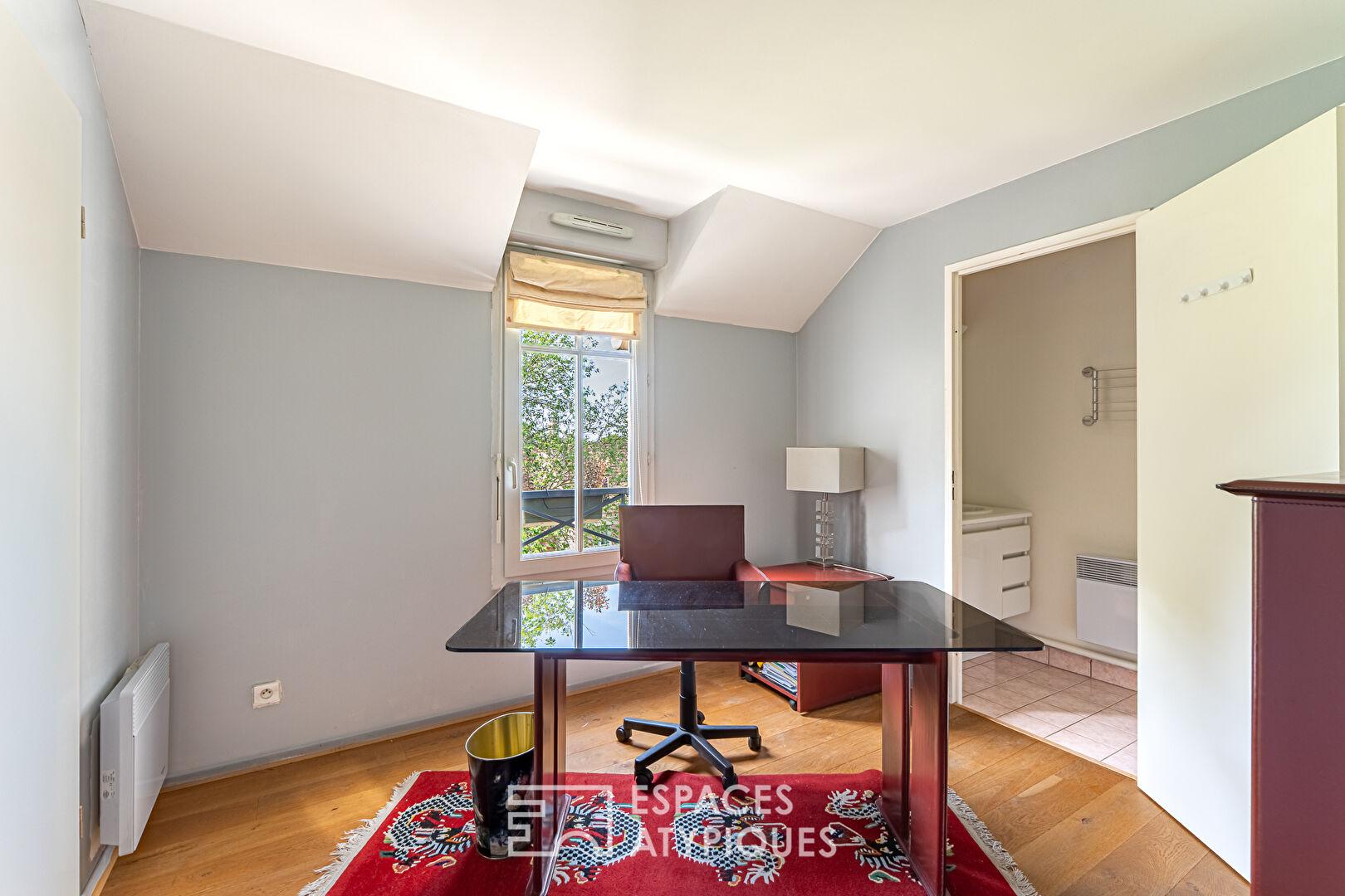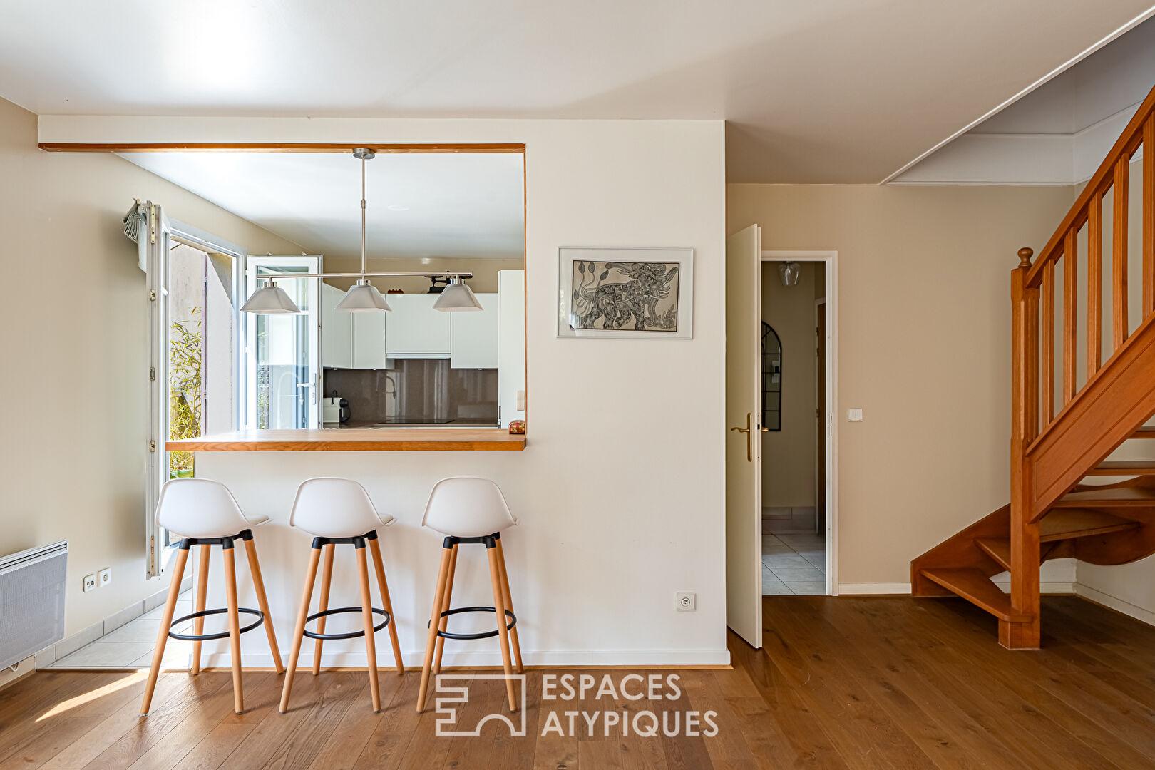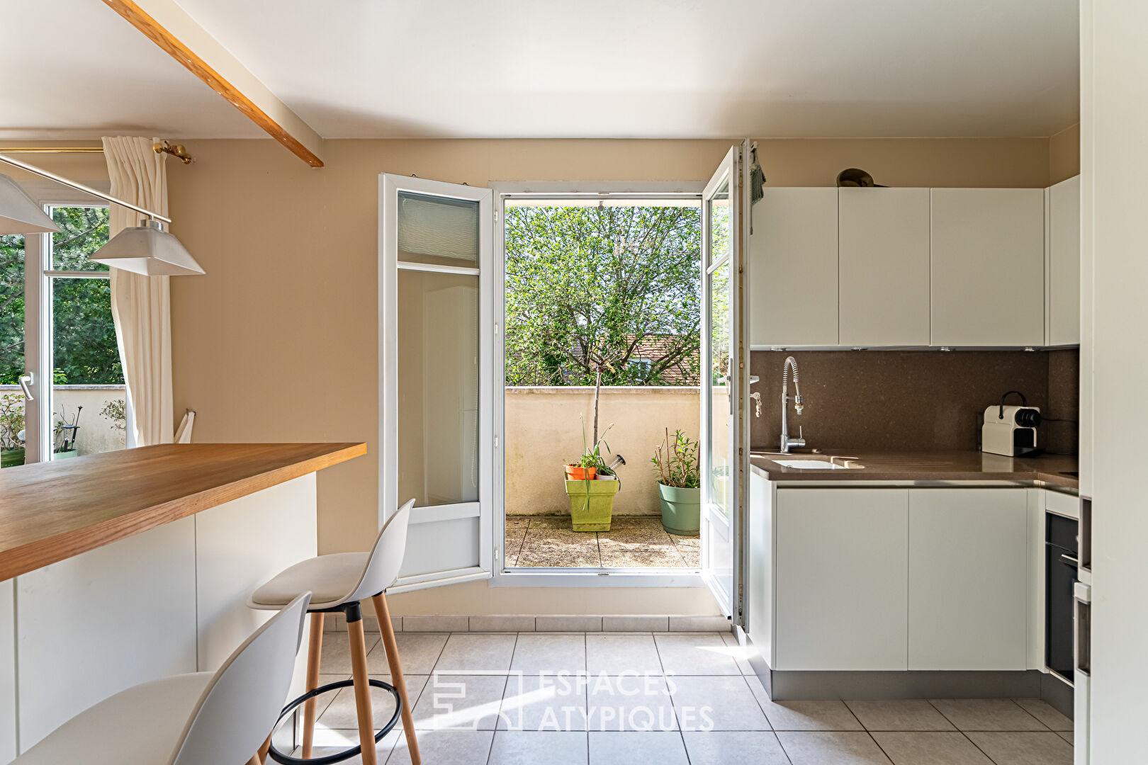 Ce duplex d’exception niché à Chambourcy, déploie une surface Carrez de 85,20 m². Cet appartement de quatre pièces se distingue par son architecture en duplex et sa belle terrasse privative de 26 m², offrant un cadre de vie agréable et privilégié. L’intérieur s’articule autour d’une pièce de vie lumineuse de 27 m² auxquels s’ajoutent les 9 m² de cuisine semi-ouverte, coeur battant de l’habitation, baignée d’une atmosphère chaleureuse. L’agencement intelligent sépare harmonieusement les espaces. l’étage supérieur est dédié au repos avec deux chambres qui se partagent une salle de bains et la troisième profite d’une salle d’eau privée. Cet agencement en duplex confère au lieu un cachet singulier, idéal pour une vie de famille moderne. À l’extérieur, la terrasse constitue un véritable prolongement des pièces de réception, invitant à la contemplation et à la détente en plein air. Situé dans un environnement calme et résidentiel, le bien bénéficie de la proximité immédiate des commodités de Chambourcy.