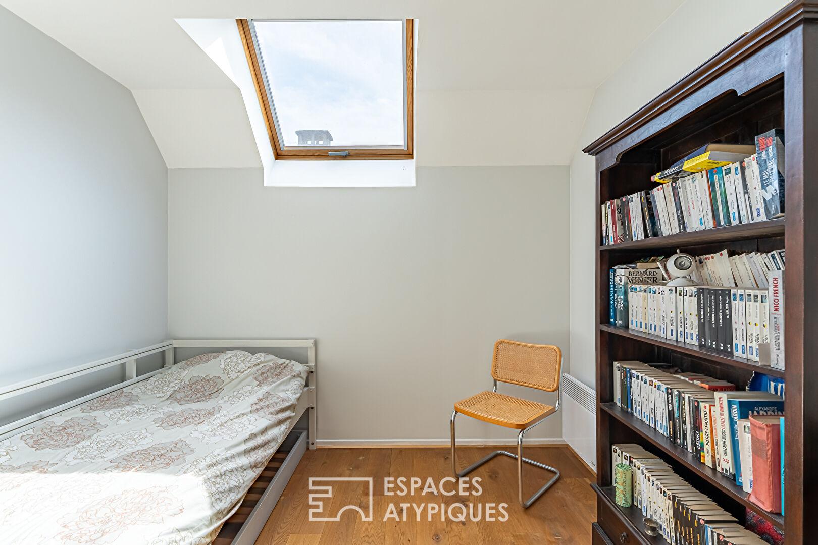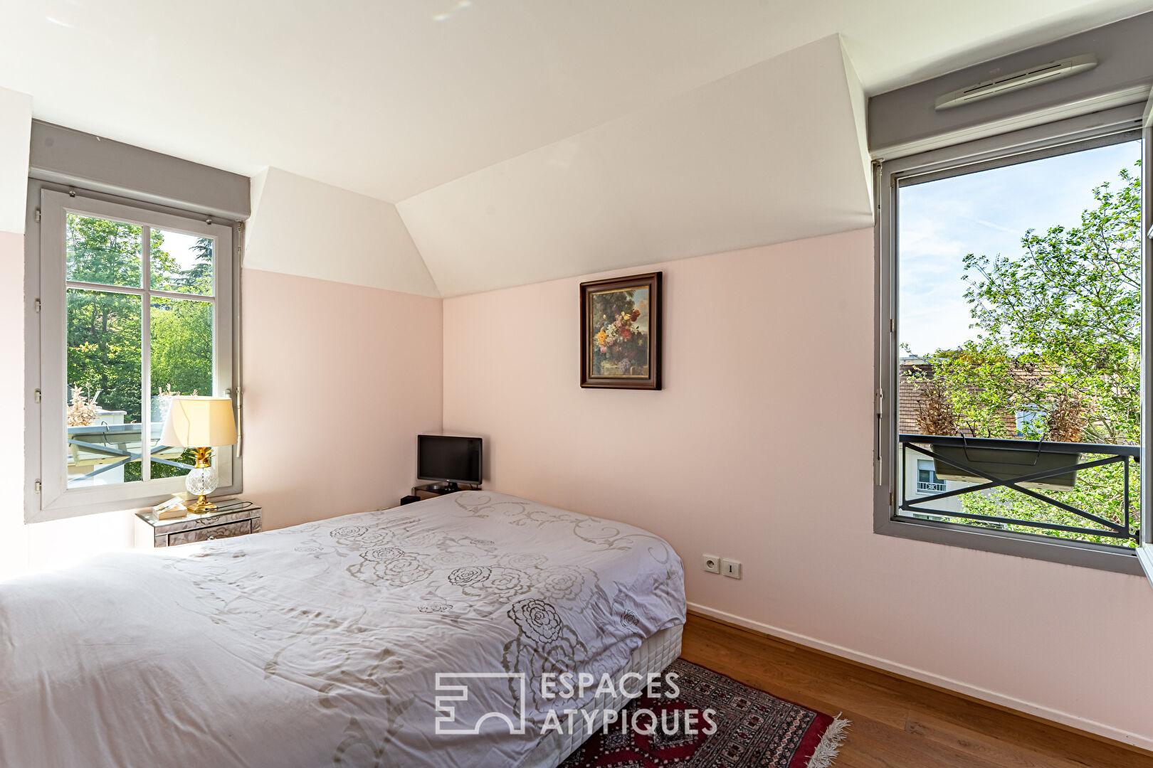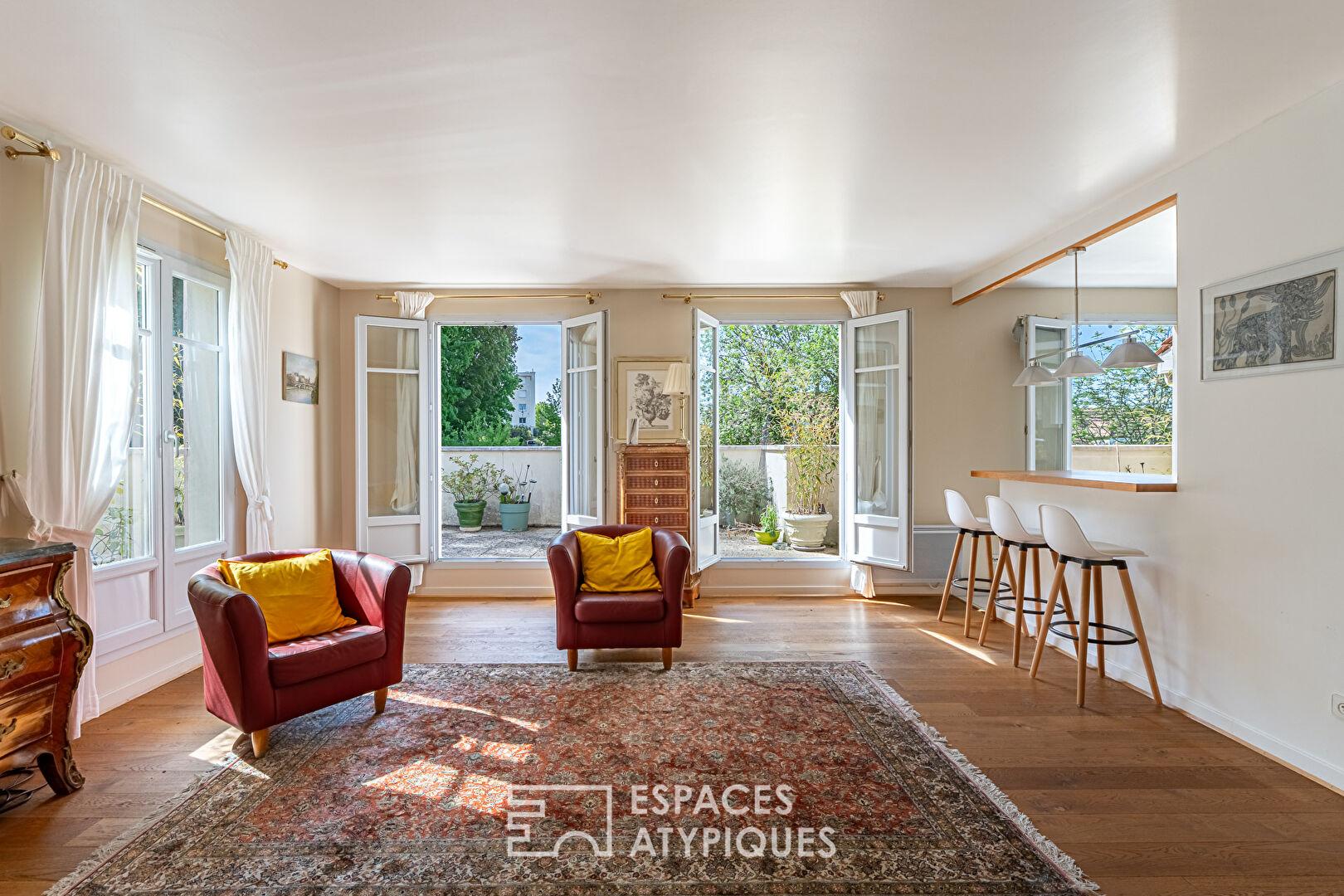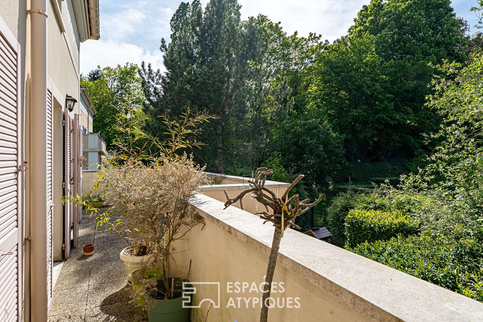 Ce duplex d’exception niché à Chambourcy, déploie une surface Carrez de 85,20 m². Cet appartement de quatre pièces se distingue par son architecture en duplex et sa belle terrasse privative de 26 m², offrant un cadre de vie agréable et privilégié. L’intérieur s’articule autour d’une pièce de vie lumineuse de 27 m² auxquels s’ajoutent les 9 m² de cuisine semi-ouverte, coeur battant de l’habitation, baignée d’une atmosphère chaleureuse. L’agencement intelligent sépare harmonieusement les espaces. l’étage supérieur est dédié au repos avec deux chambres qui se partagent une salle de bains et la troisième profite d’une salle d’eau privée. Cet agencement en duplex confère au lieu un cachet singulier, idéal pour une vie de famille moderne. À l’extérieur, la terrasse constitue un véritable prolongement des pièces de réception, invitant à la contemplation et à la détente en plein air. Situé dans un environnement calme et résidentiel, le bien bénéficie de la proximité immédiate des commodités de Chambourcy.
