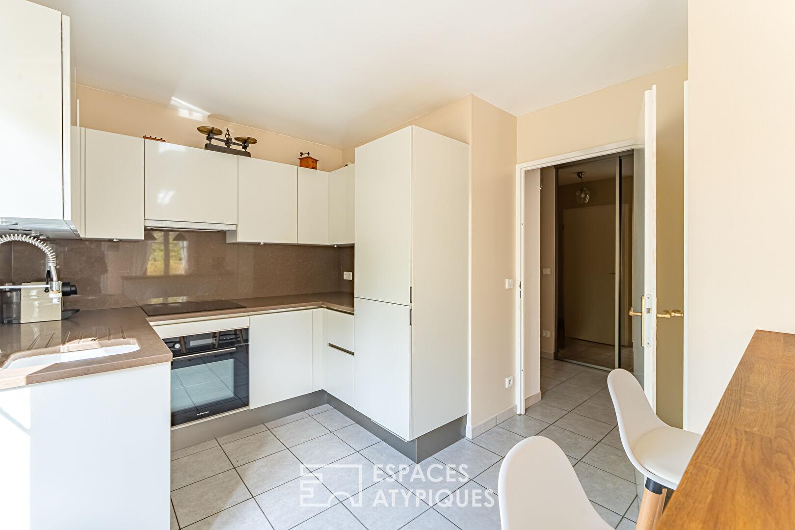 Une cave et un box complètent les prestations de ce joli appartement au calme absolu.