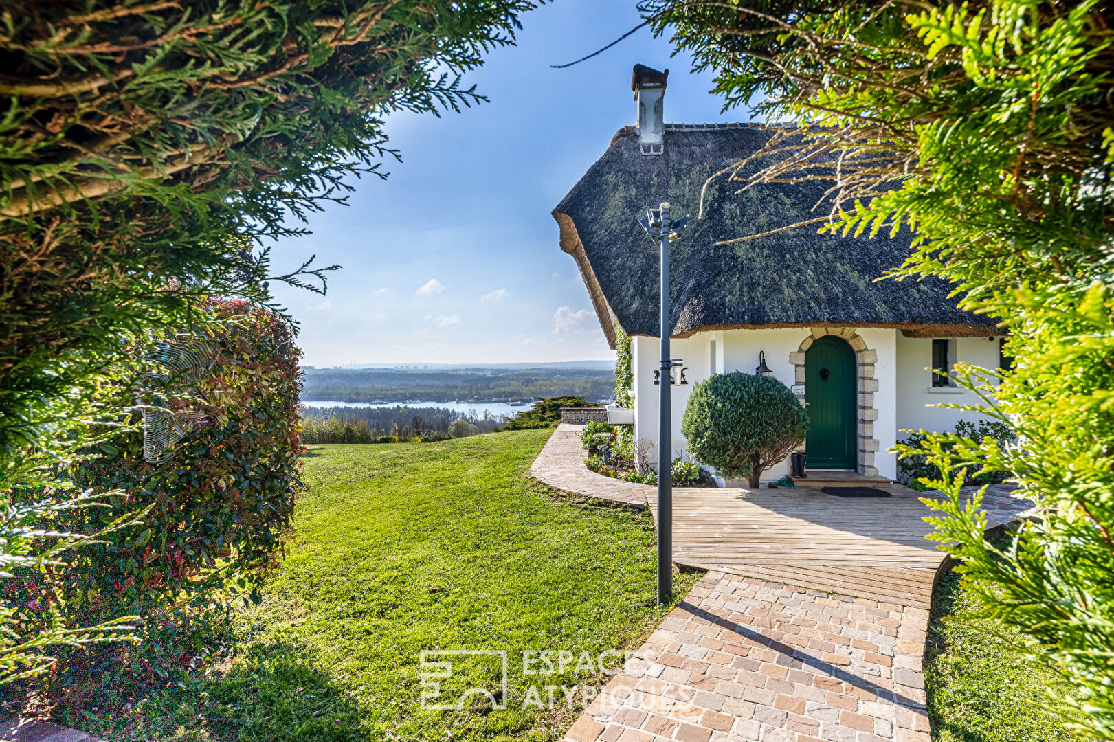Dès l’entrée, le regard ne cesse d’être attiré par la vue exceptionnelle?. Et lorsqu’il se pose enfin sur la magnifique chaumière et sa terrasse, il devient très difficile de résister à la magie du lieu.