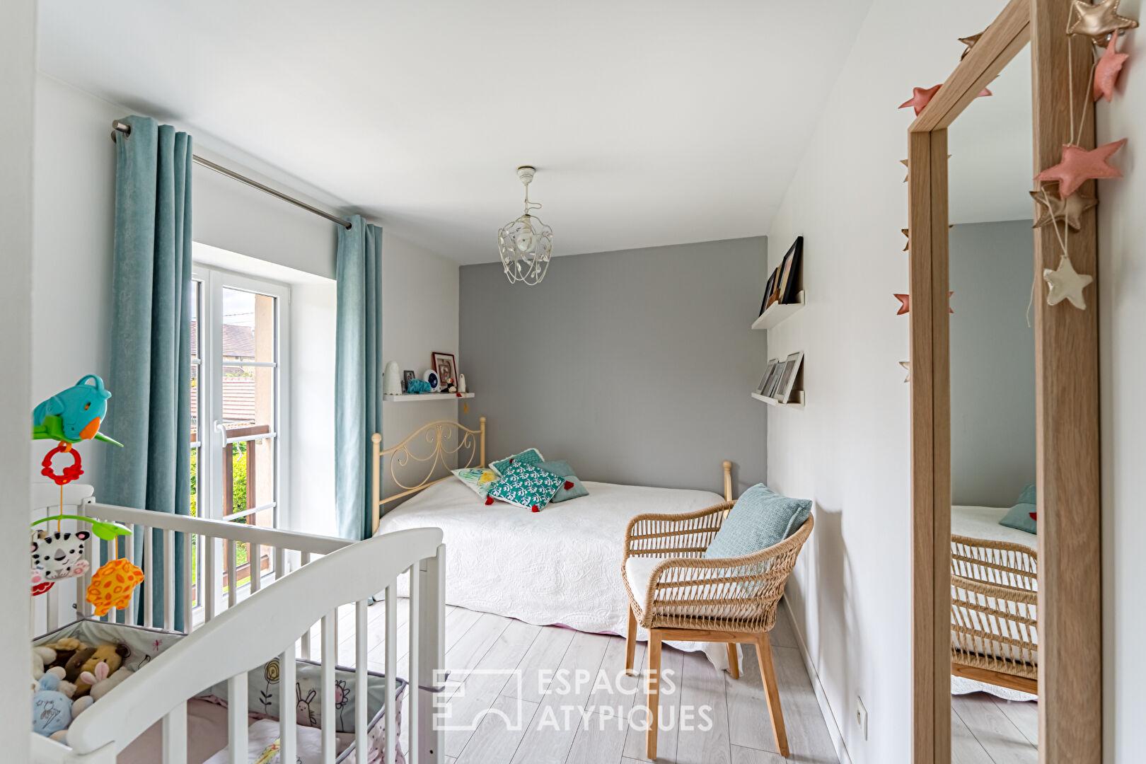 Cette belle maison des années 1900, issue d’un ancien corps de ferme, a été entièrement réhabilitée tout en conservant son cachet d’antan. Elle offre une superficie de 159 m² utiles, dont 104 m² habitables, sur un terrain de 410 m² entièrement clos de murs en pierre meulière, située dans le quartier des Gâtines. Son emplacement est idéal, alliant verdure et proximité de toutes les commodités.