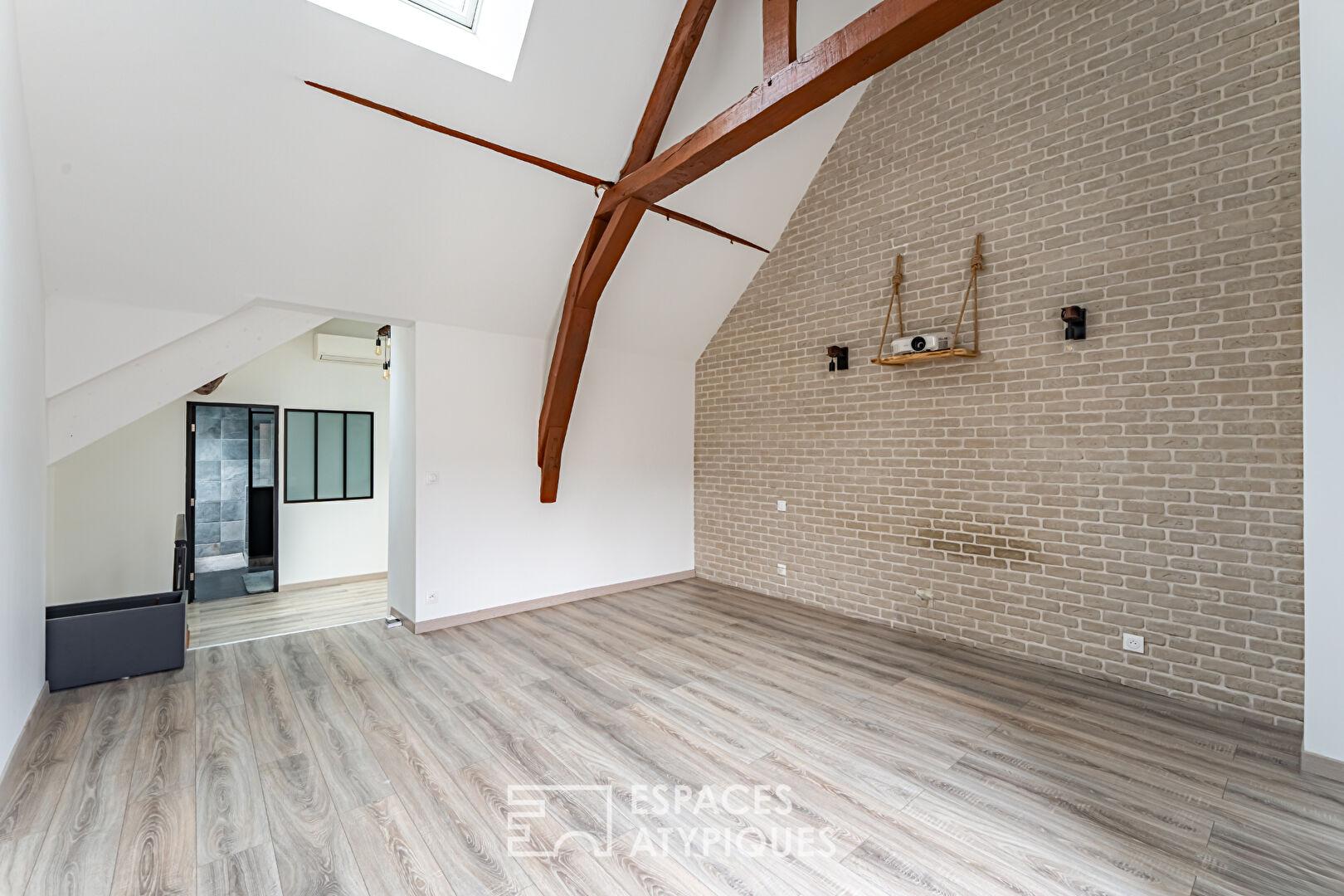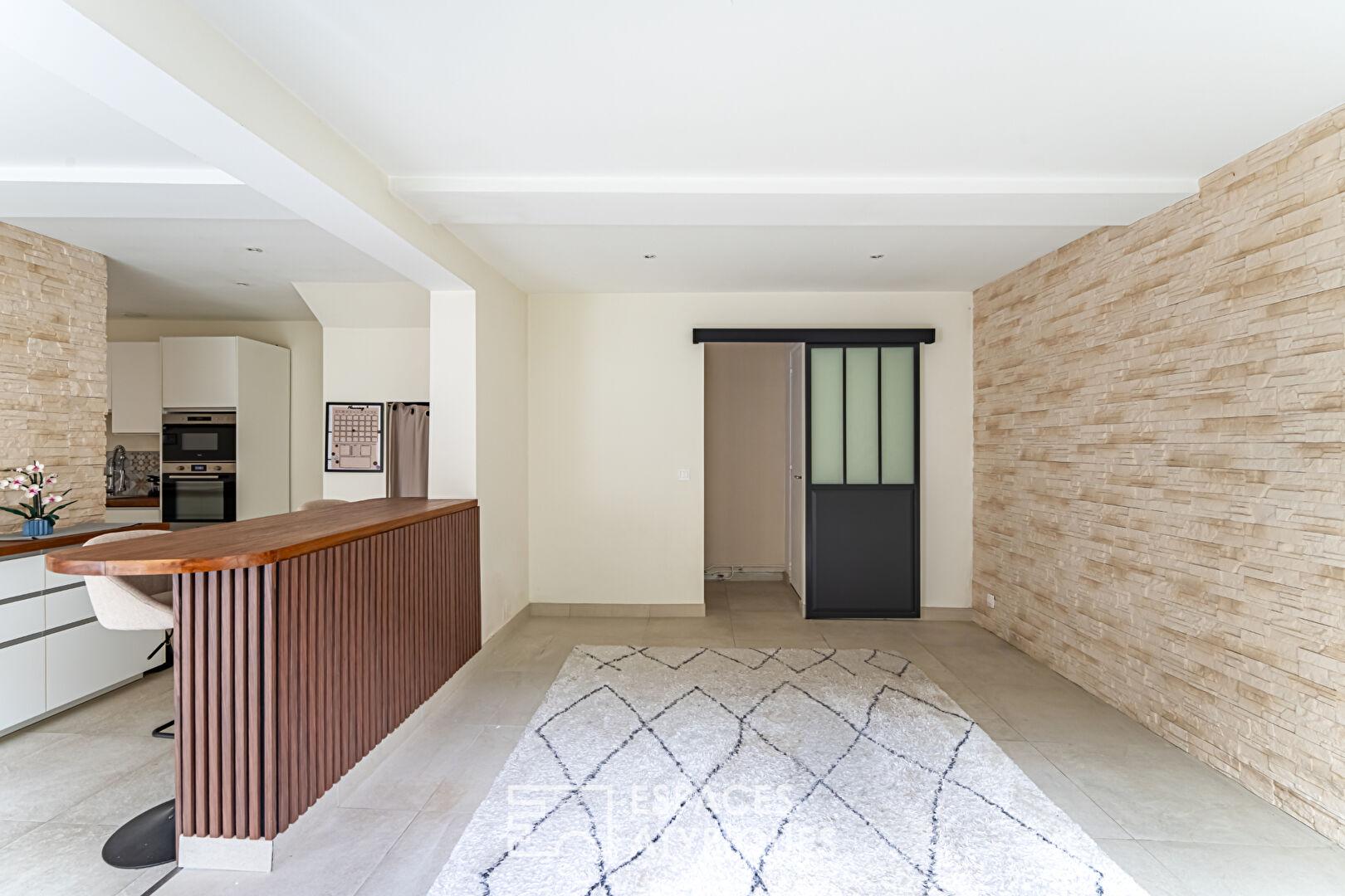 L’architecture intérieure, rythmée par des matériaux de qualité, préserve l’âme du bâti tout en offrant un confort moderne.