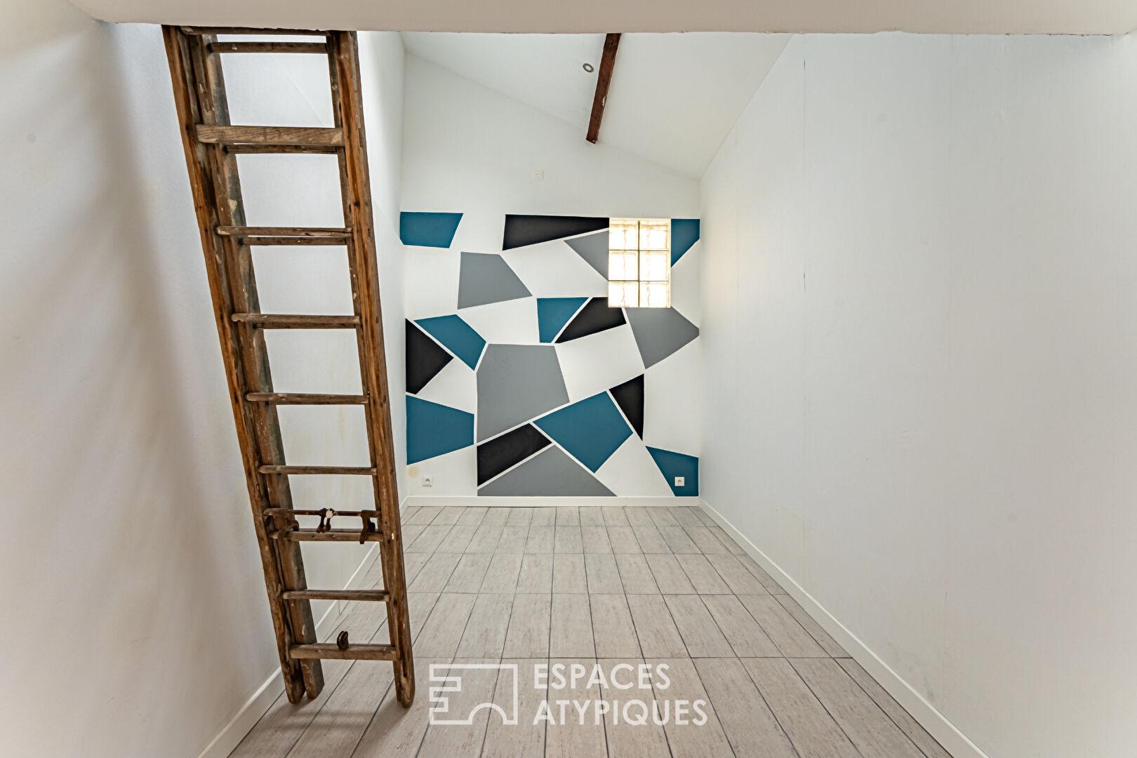 Le premier étage est dédié à l’espace nuit et au travail, proposant deux chambres confortables, un bureau modulable et deux salles d’eau au design soigné.