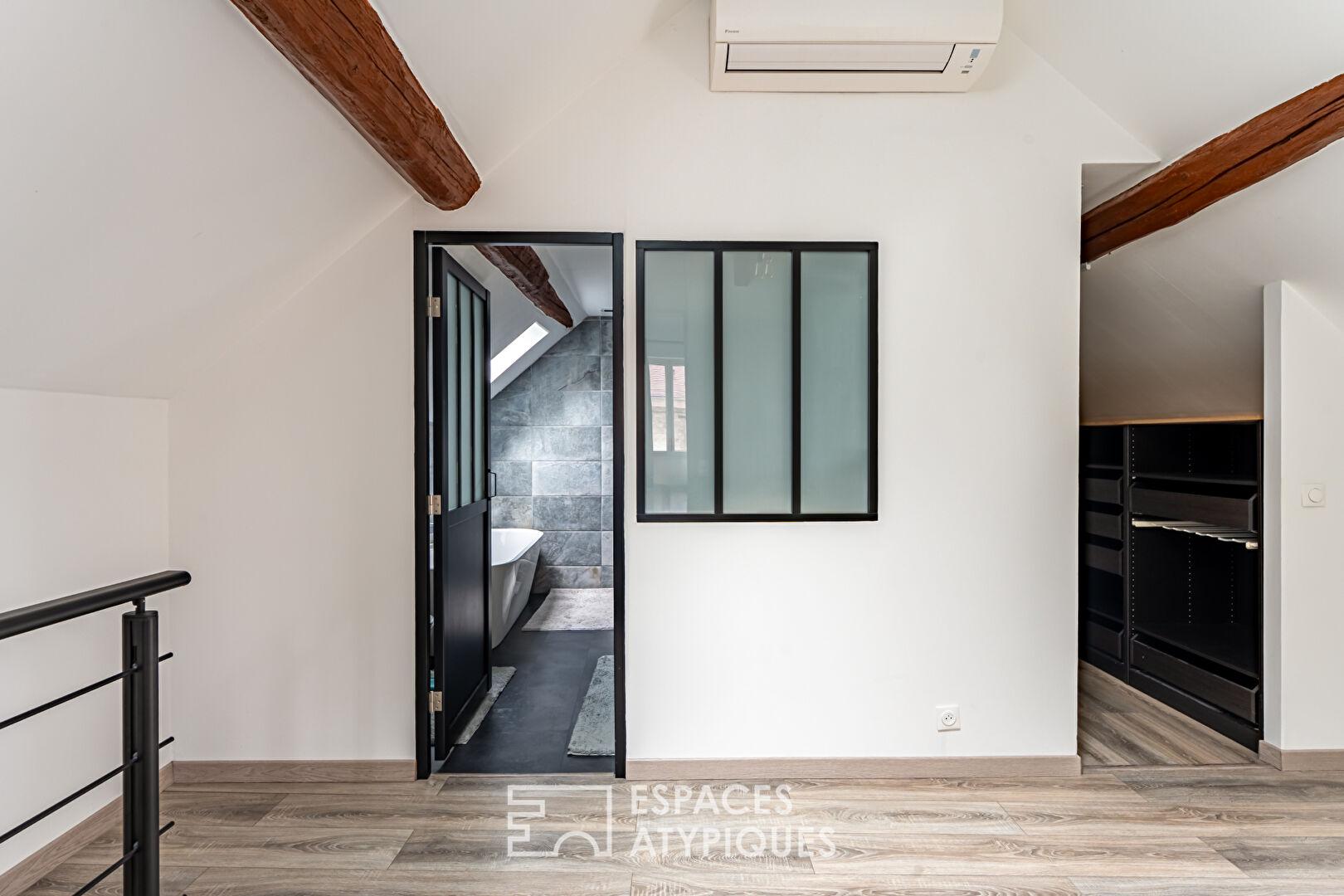 Le dernier niveau, véritable cocon sous les toits, accueille une suite parentale climatisée avec dressing et salle de bains privative.