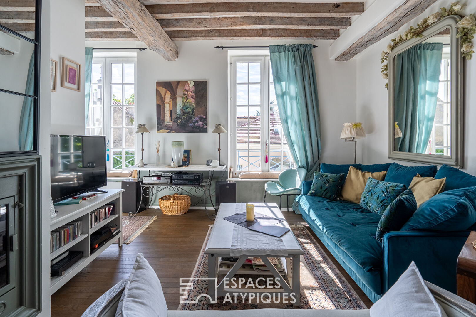 Ce bel appartement joliment aménagé de 71 m² a pris place au 1er étage d’un hotel particulier situé au coeur d’Andrésy, charmante commune et arrondissement de Saint Germain en Laye, qui profite d’un agréable environnement avec ses commerces, restaurants, sa gare pour Paris Saint Lazare mais aussi des bords de Seine.