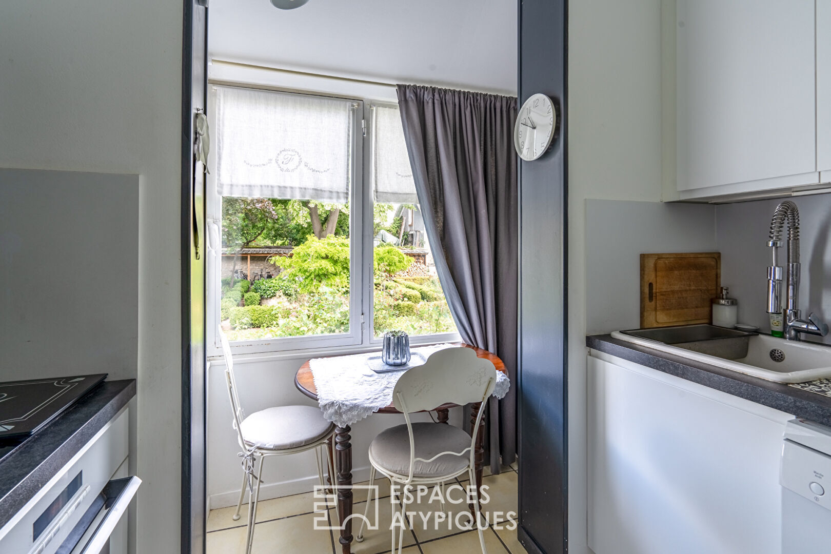 L’entrée s’ouvre sur le lumineux salon/salle manger en L de 30 m² avec son parquet de qualité, sa cheminée, une belle hauteur sous plafond, ses grandes fenêtres sur jardin. La chambre parentale, avec double orientation, profite de sa salle de bains privée et d’une agréable vue sur le jardin arrière de la propriété. Un agréable bureau de 8 m² ou petite chambre jouxte cette chaleureuse salle à manger. Le dégagement dessert une salle d’eau avec douche italienne puis l’adorable cuisine tournée sur ce parc joliment organisé dans lequel il est doux de déambuler, entre les buis, fleurs, figuier, tilleul, clos de belles pierres anciennes sur lesquelles s’agrippent quelques vignes….