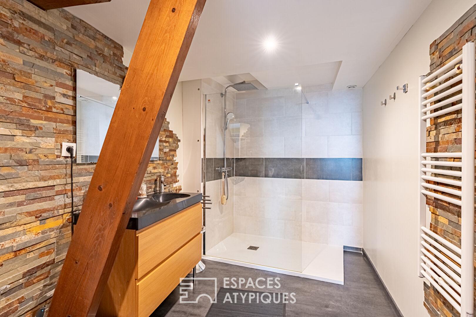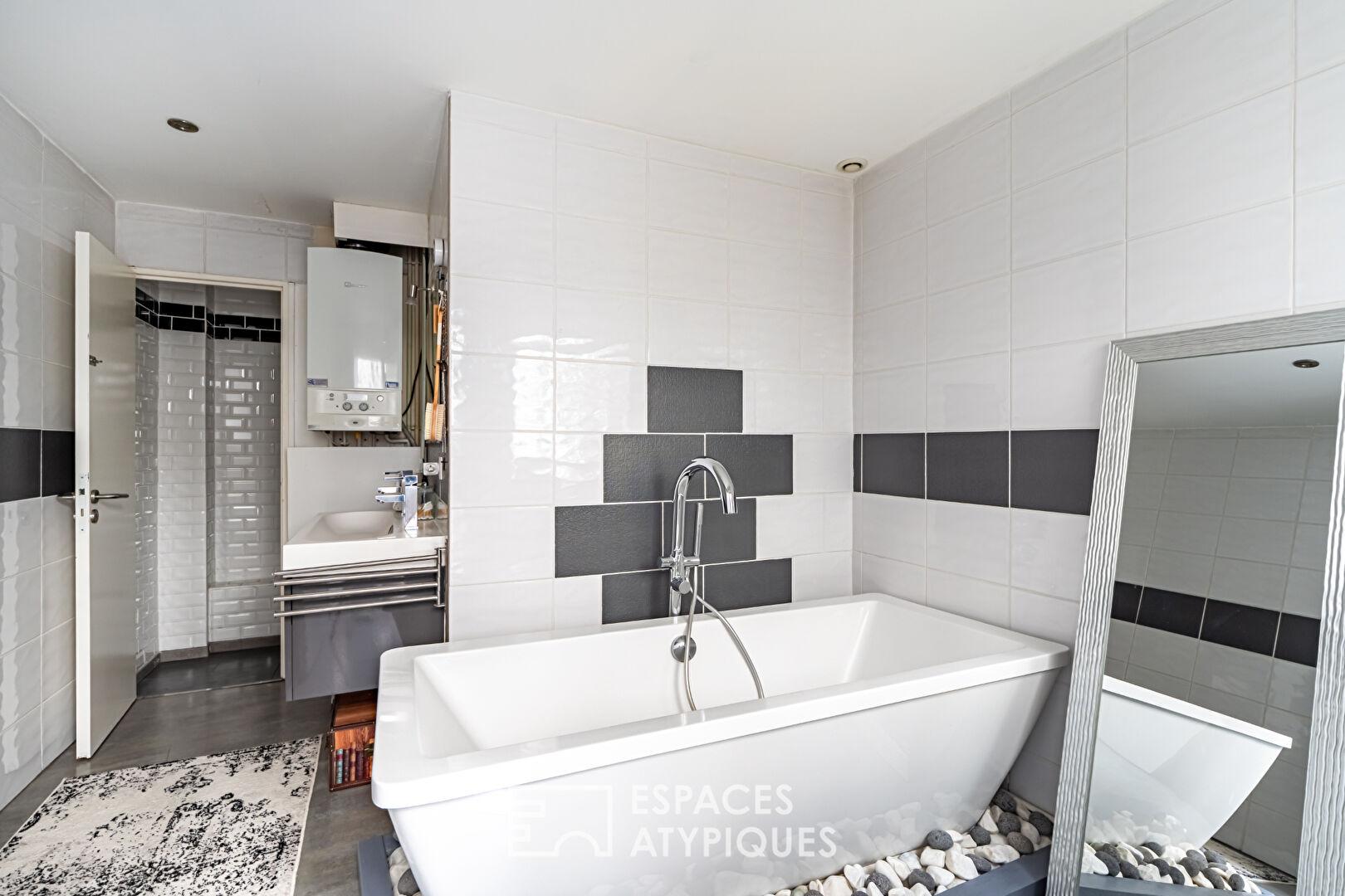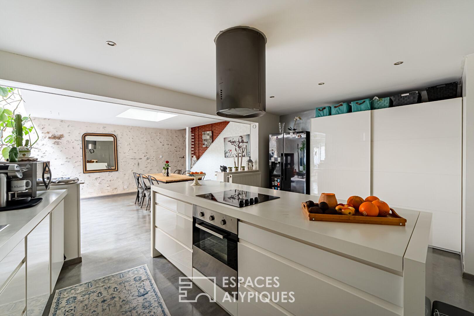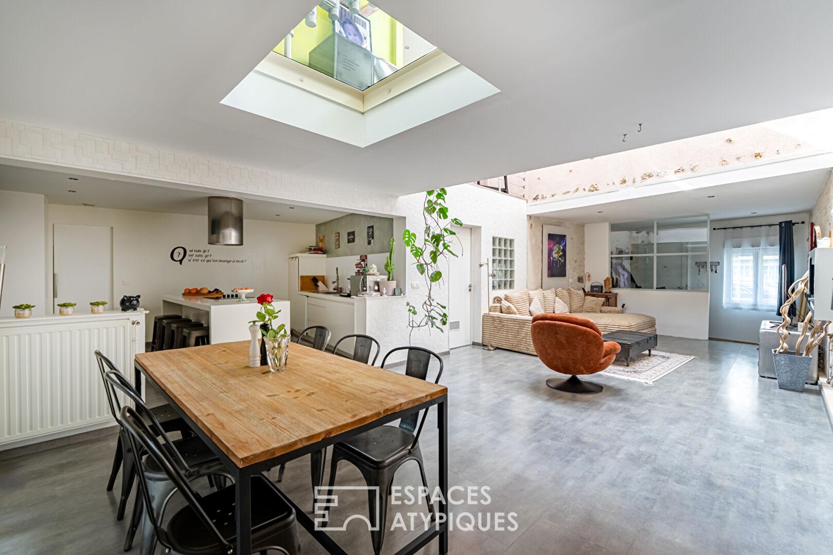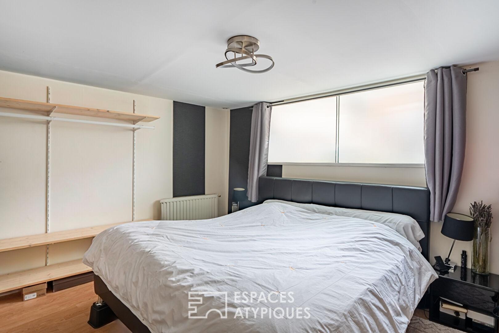 Alliant une architecture industrielle et un confort contemporain, cette réhabilitation audacieuse s’implante sur une parcelle de 128 m², offrant un cadre de vie calme et sécurisé, à l’abri des regards.
