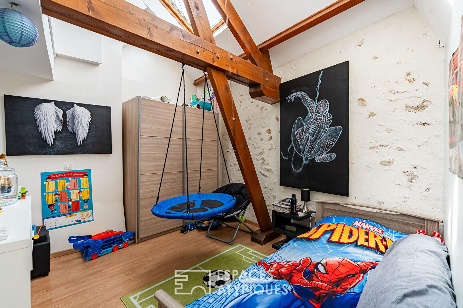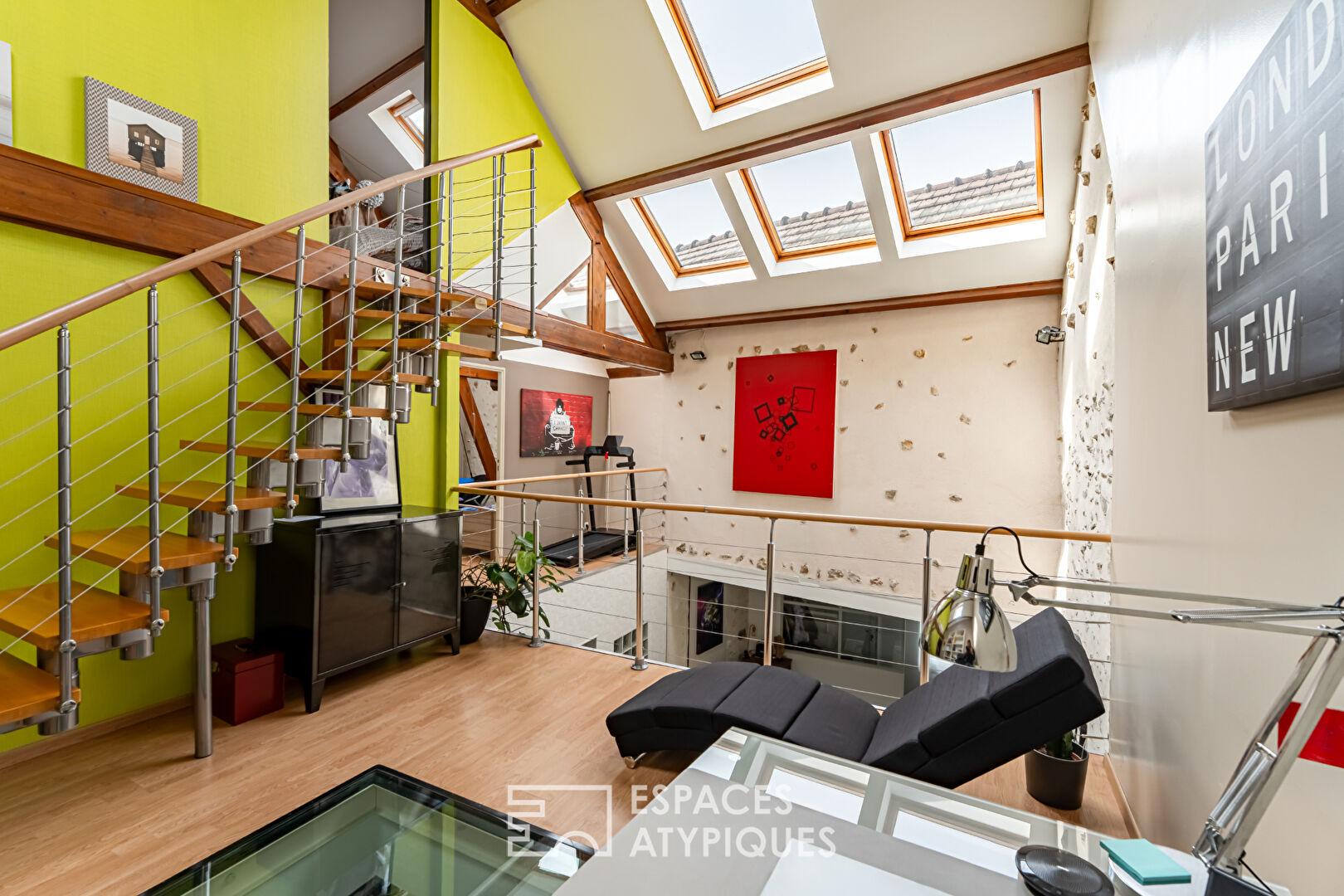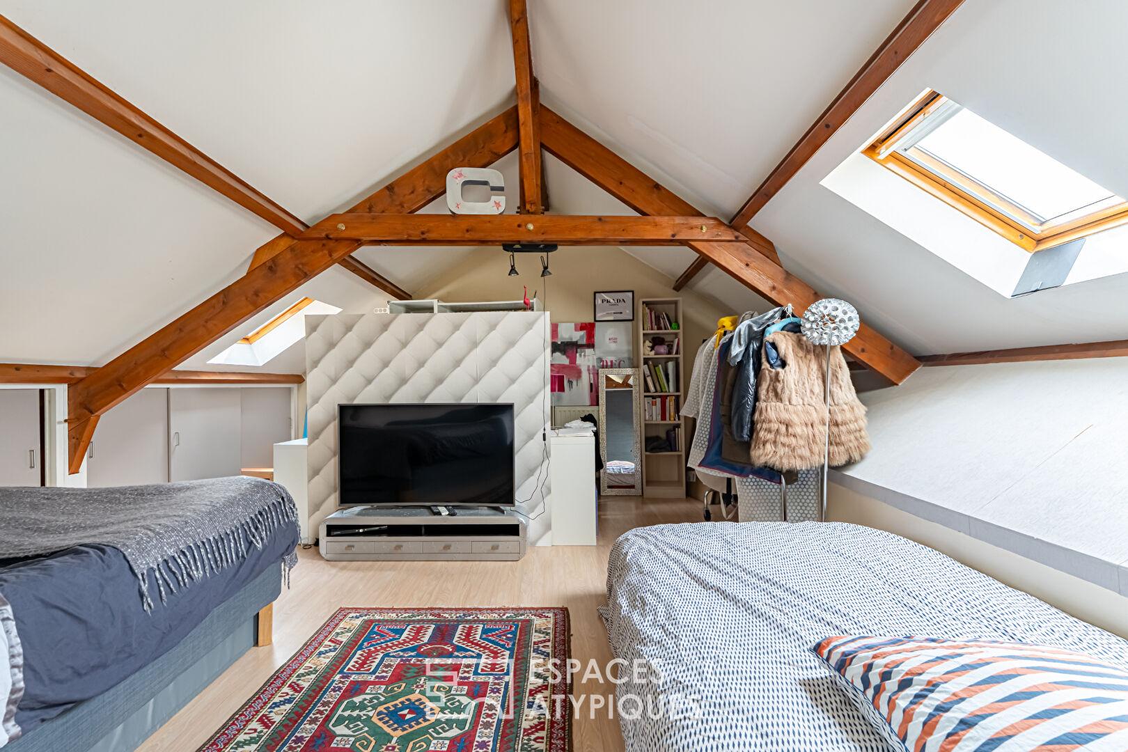 Situé à Orgeval, au coeur du paisible quartier résidentiel de la Chapelle, cet ancien garage automobile a bénéficié d’une métamorphose remarquable en un loft de 151 m².