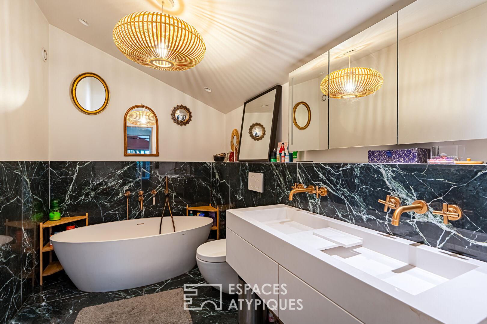 Développant une surface de 108 m², il bénéficie également d’un extérieur de 50 m², rare et unique. Une parfaite alliance entre volumes généreux, lumière naturelle et caractère authentique.
