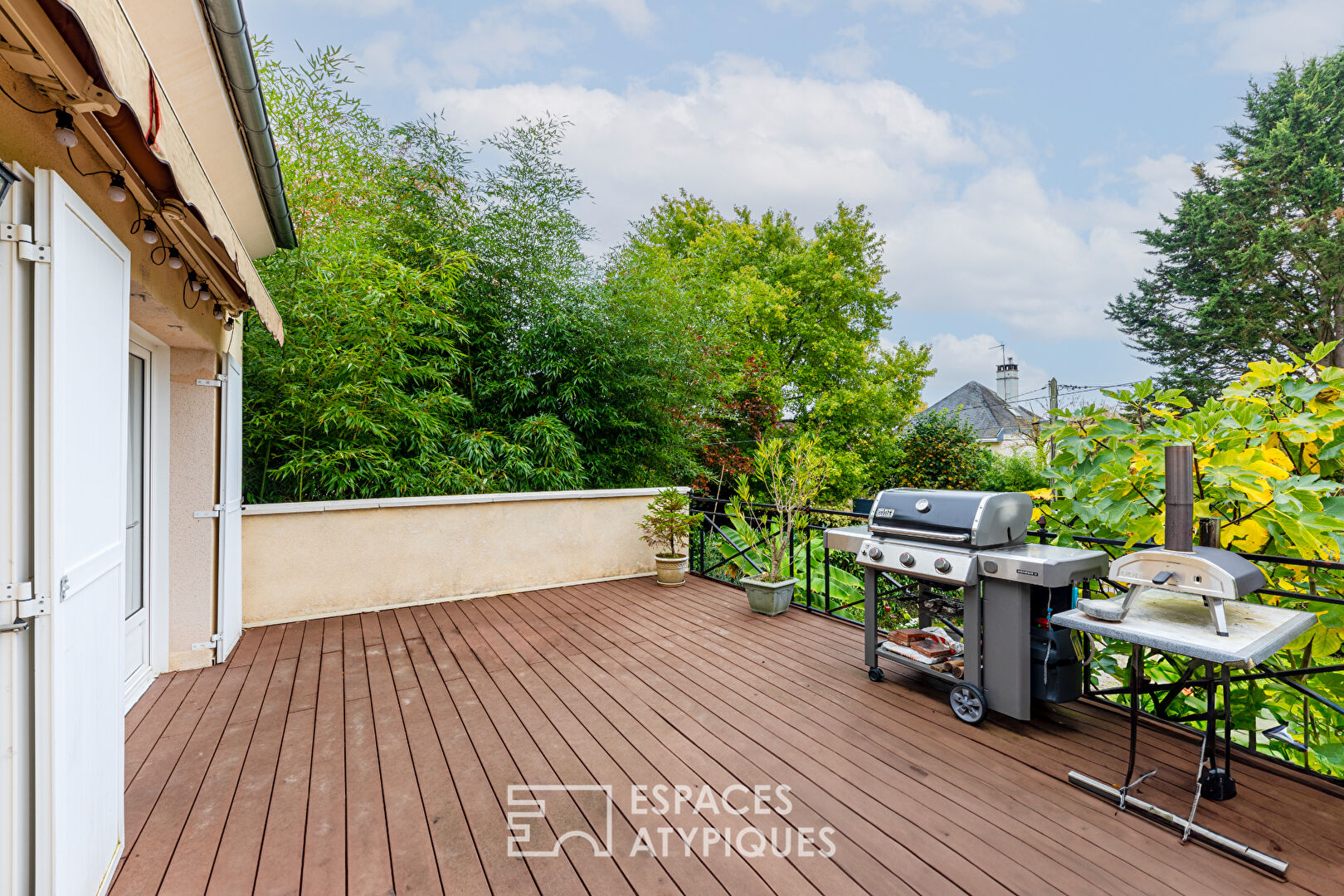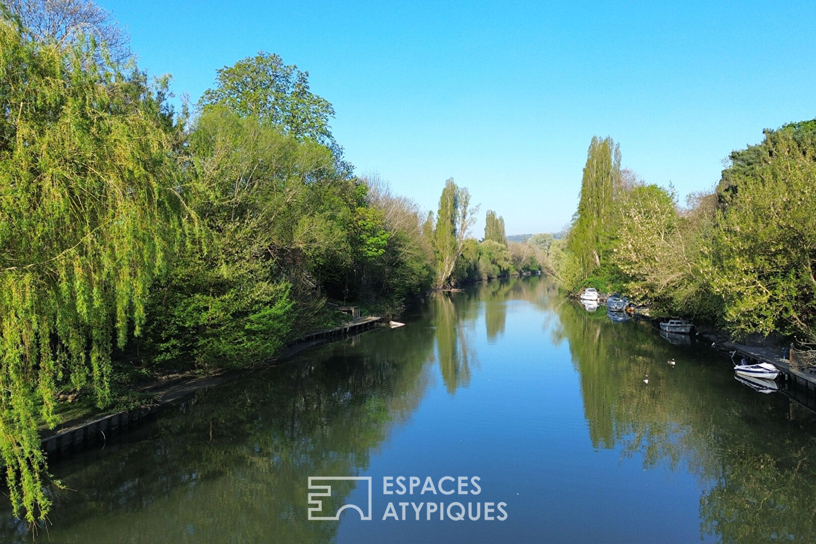 Cette charmante maison calme et lumineuse, est agrémentée d’une magnifique terrasse exposée sud de plus de 35 m² et d’un joli jardin de 555 m² qui l’entoure et donne accès à la Seine pour y amarrer son bateau et profiter de multiples loisirs nautiques.