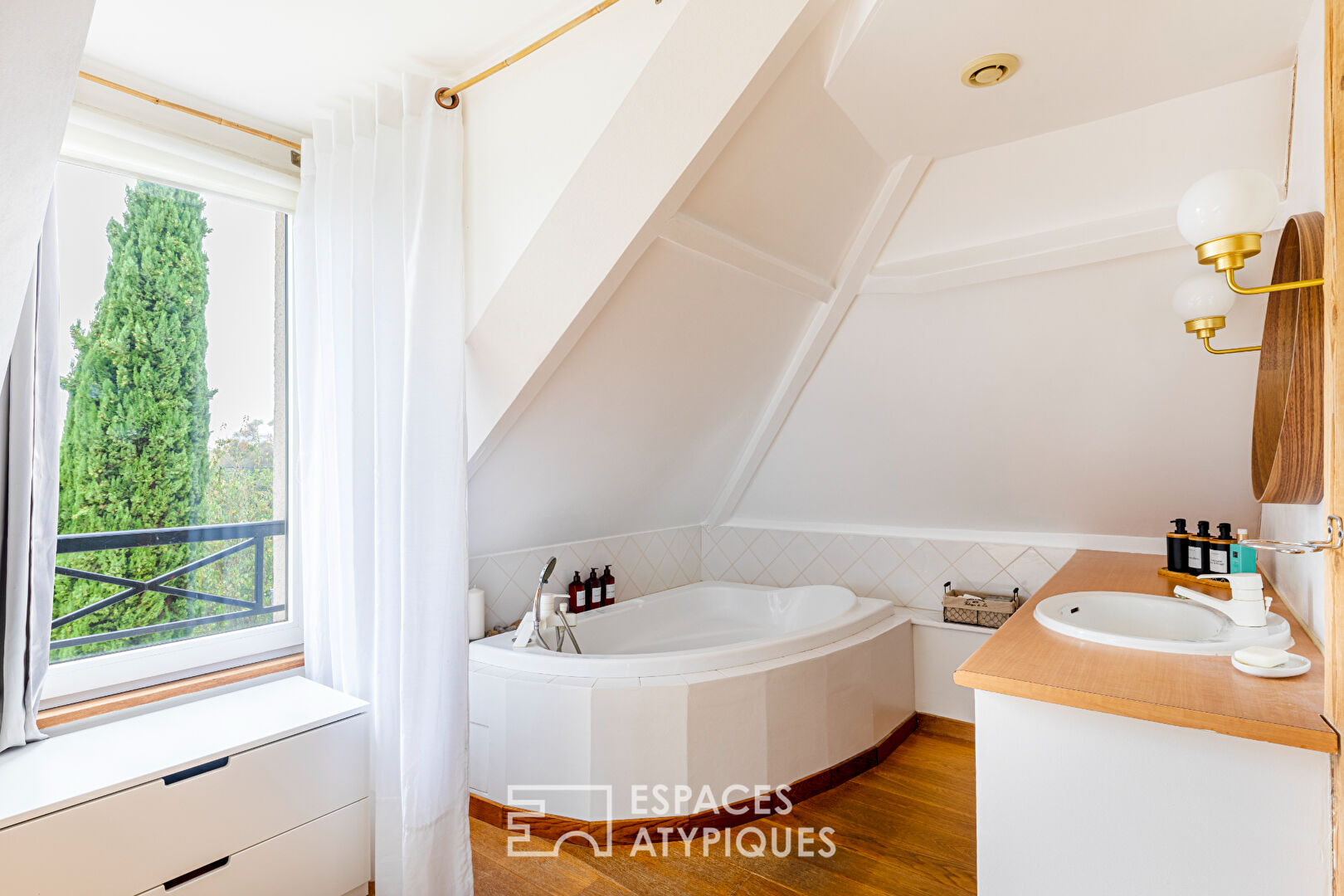 Une 2ème chambre se cache telle une cabane et bénéficie d’une magnifique vue Seine.