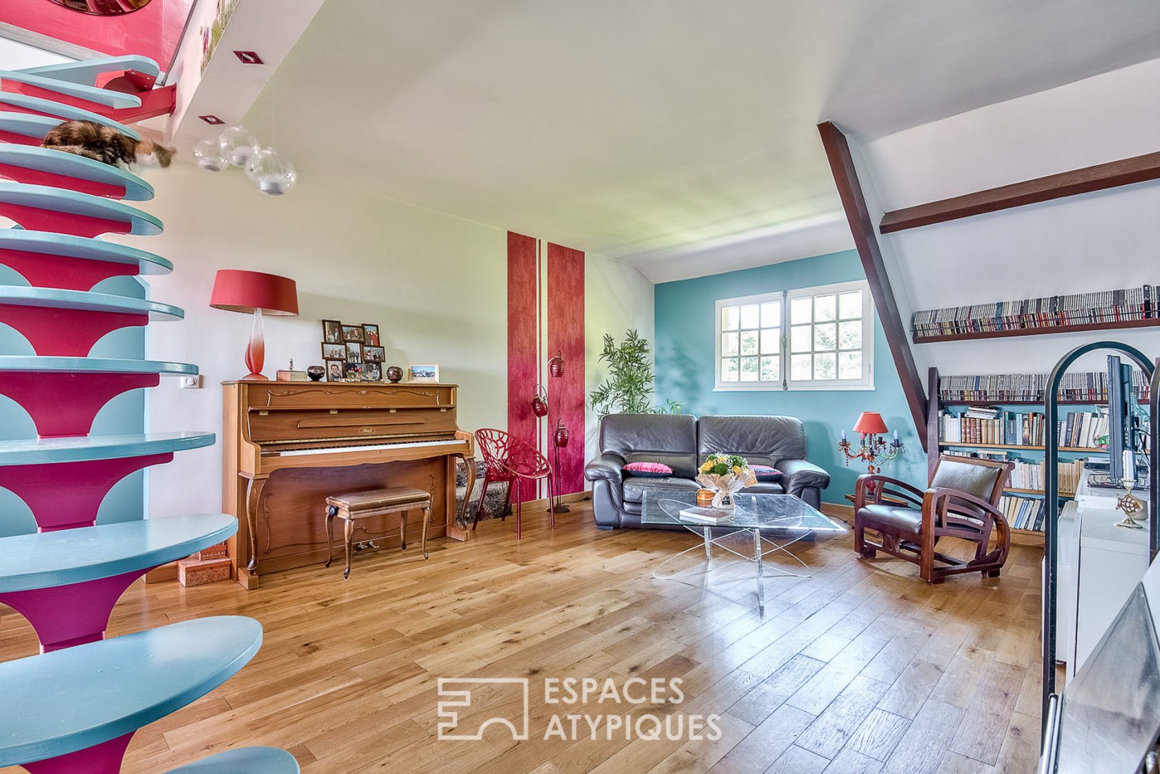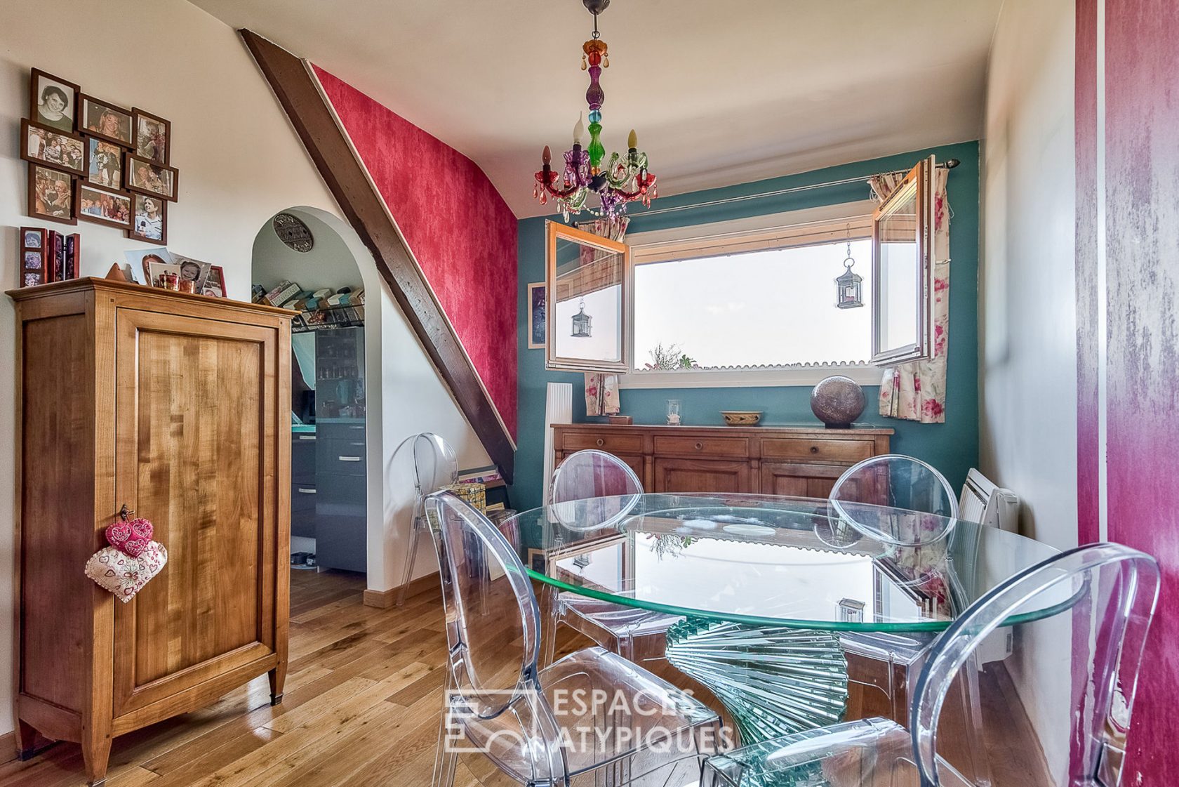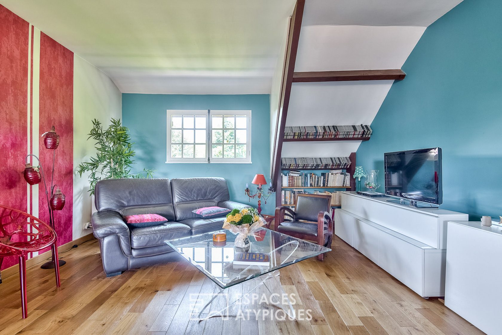 En plein coeur de cette jolie commune de Mareil-Marly, à l’esprit village, cet appartement de 77 m² Carrez (114 m² au sol) est situé au dernier étage d’une maison située en plein centre-ville. Au 3ème et dernier étage de cette maison, cet appartement offre une superbe vue dégagée. Le bel espace de vie de 30 m² (Carrez), au plancher bois est idéalement exposé traversant Est-Ouest. La cuisine aménagée est semi-ouverte avec vue sur le salon pour plus de convivialité. Une cheminée moderne agrémente l’espace salon et réaffirme l’ambiance chaleureuse de cette pièce. Les deux chambres bénéficient de placards et se partagent une jolie salle d’eau orientée sud. Du salon, un petit escalier ouvre sur une mezzanine mansardée avec velux. C’est un charmant espace supplémentaire à organiser pour l’investir totalement. Gare Mareil-Marly à 2 min à pied, avec correspondance pour Paris St Lazare ou La Défense. RER A Ecole maternelle / primaire à 8 minutes à pied Collège/Lycées à St Germain en Laye (2 km) A86 et A13 à moins de 9 km Contact : SOPHIE 07 61 00 52 78 Copropriété de 5 lots (Pas de procédure en cours). Charges annuelles : 987 euros. Sophie STANDERA Agent Commercial – Numéro RSAC : 832411144 – Paris