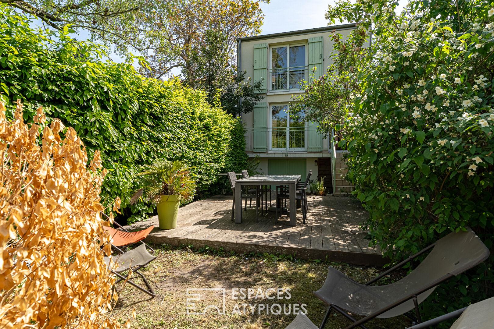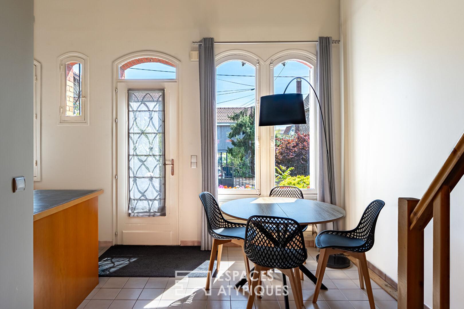Cette maison des années 30, très agréable, nichée au coeur du quartier résidentiel CENTRE -VILLE de Houilles, dévoile une métamorphose architecturale réussie. Issue d’un agrandissement audacieux réalisé en 2001 et d’une rénovation soignée, cette propriété de 107 m² habitables s’érige sur une parcelle de 267 m². Ce bien immobilier atypique allie le charme de l’ancien à des lignes contemporaines, complété par une cour d’accueil et un jardin très intimiste à l’arrière.