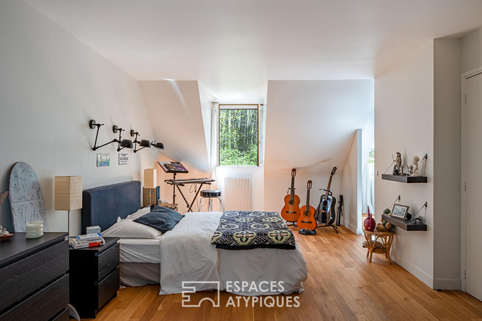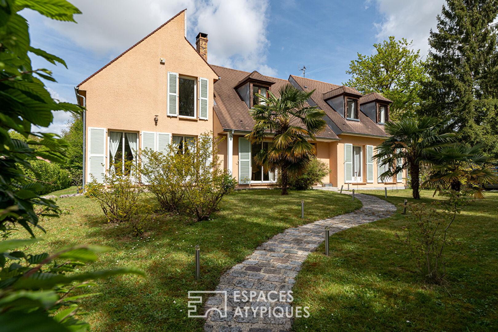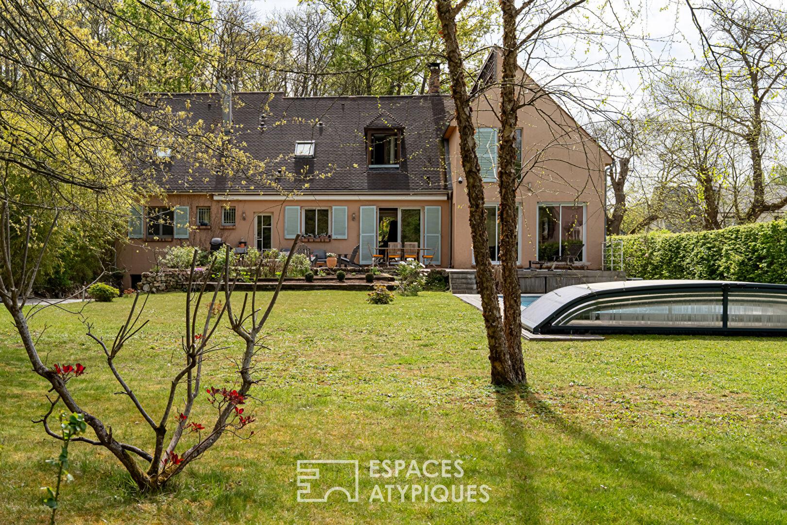 Située à Bullion, au cœur d’un environnement verdoyant et préservé, cette maison d’architecte s’inscrit dans un parc arboré d’environ 1,5 hectare, avec un accès direct et privilégié au bois environnant. Elle offre ainsi un cadre de vie rare, alliant nature, intimité et confort moderne.