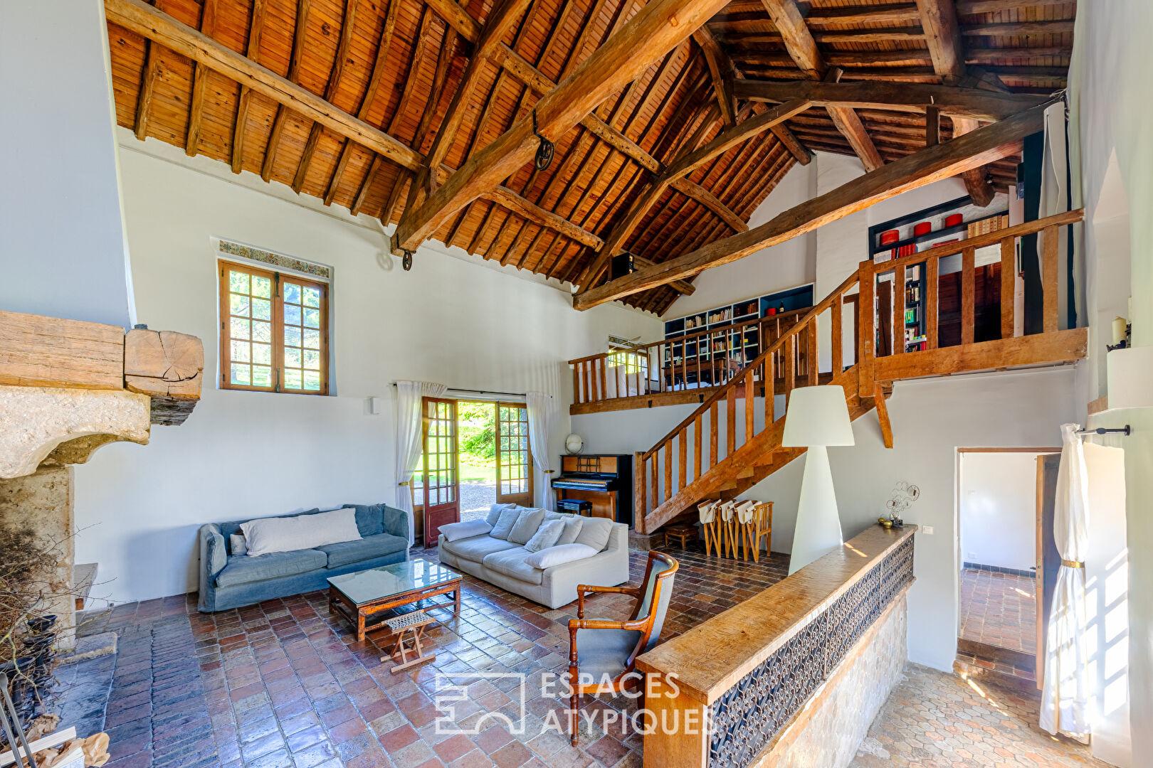Le coeur de la propriété bat dans une bâtisse de caractère où l’ancien dialogue avec le contemporain. On y découvre :