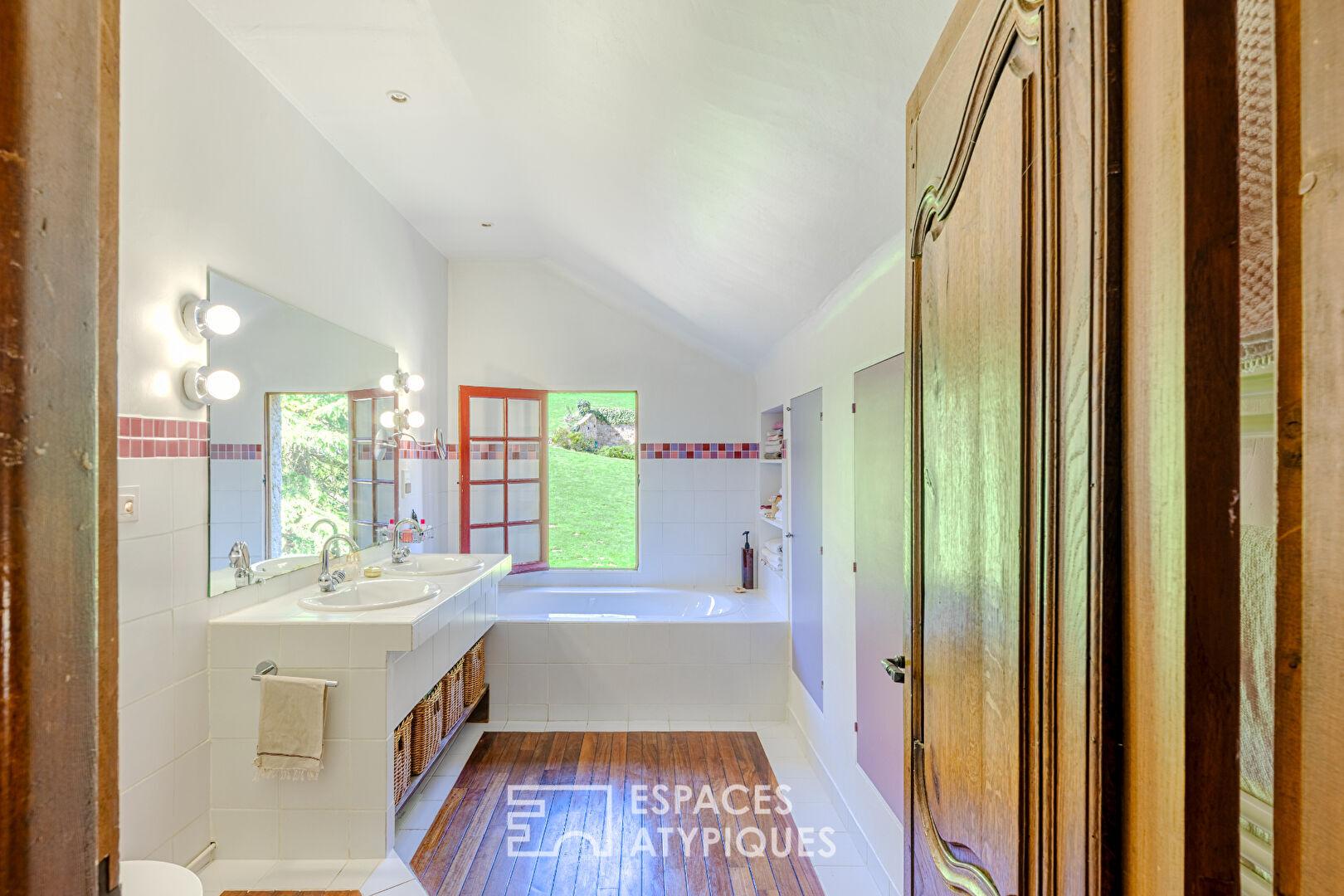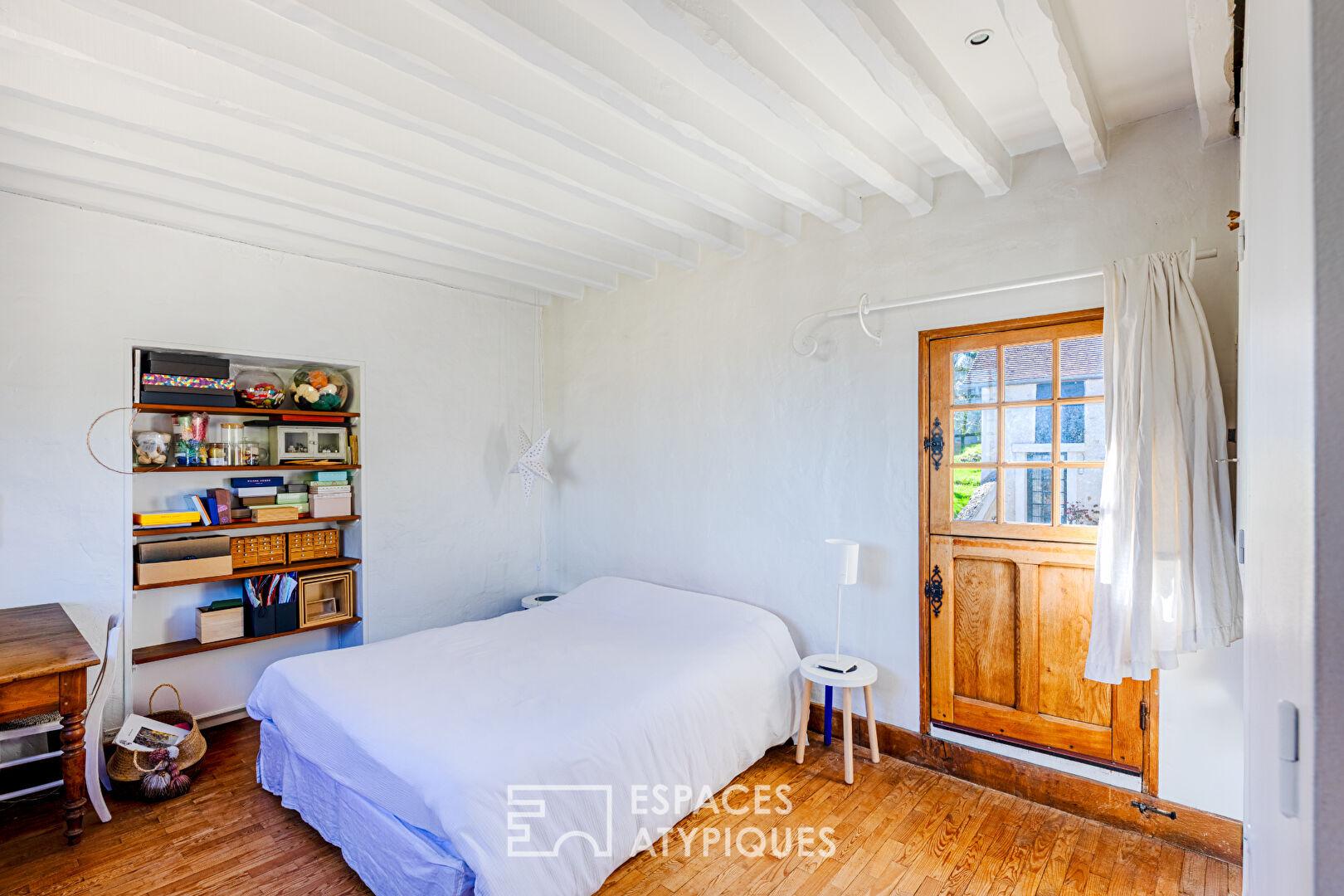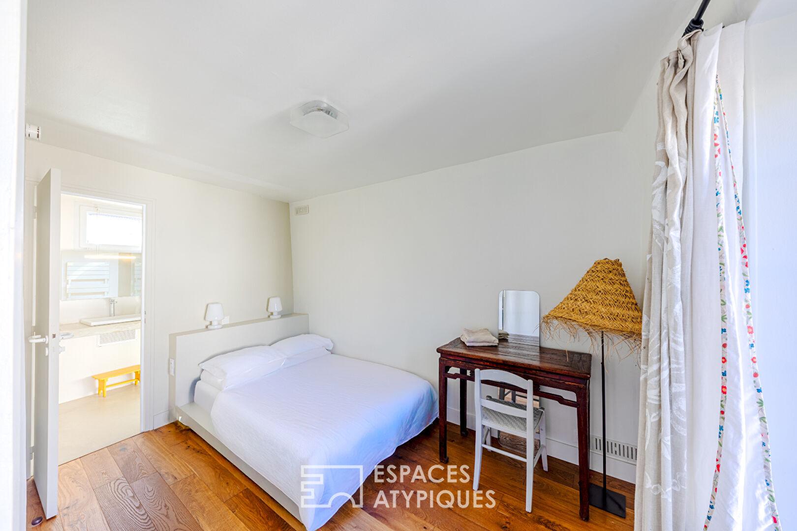 La Maison d’amis : Un cocon supplémentaire comprenant séjour et suite à l’étage avec chambre et salle d’eau ouverte.