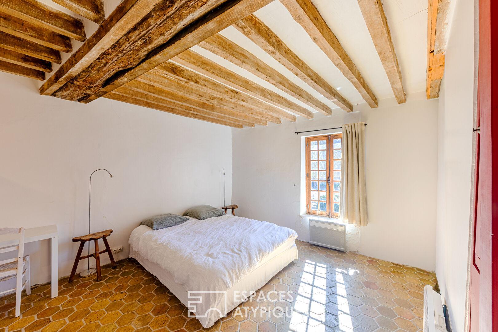 Equilibre parfait entre le rustique chic et le confort moderne. Les tomettes anciennes, les carreaux de ciment et les poutres d’époque s’effacent devant la clarté des rénovations récentes. C’est un lieu pluriel, capable d’accueillir une famille nombreuse comme une activité de chambres d’hôtes de prestige.