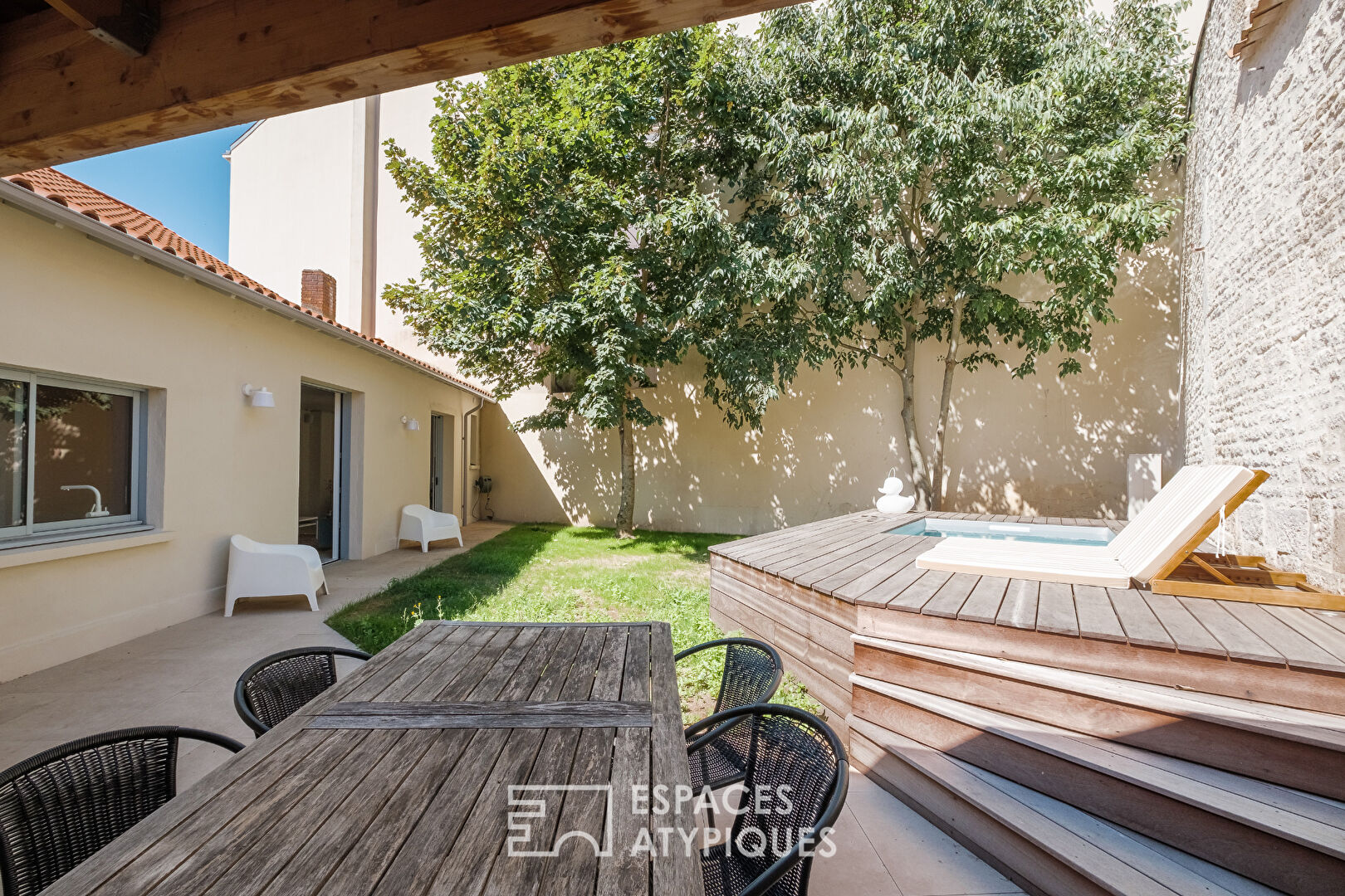 Idéalement située, en plein coeur de Niort, à quelques minutes à pied de La Brèche, cette maison de ville a bénéficié d’une rénovation complète et soignée, mêlant design contemporain et fonctionnalité. Insoupçonnable depuis la rue, elle dévoile un véritable havre de paix : un jardin intimiste avec piscine, terrasse et préau, offrant un cadre de vie privilégié et sans aucun vis-à-vis.