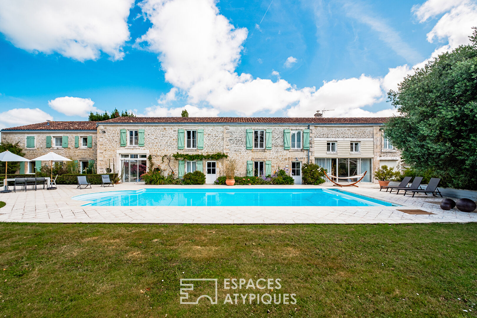 Un cadre idéal pour une grande famille qui souhaite se retrouver, flâner dans l’eau translucide de la grande piscine et profiter de la sérénité poitevine.