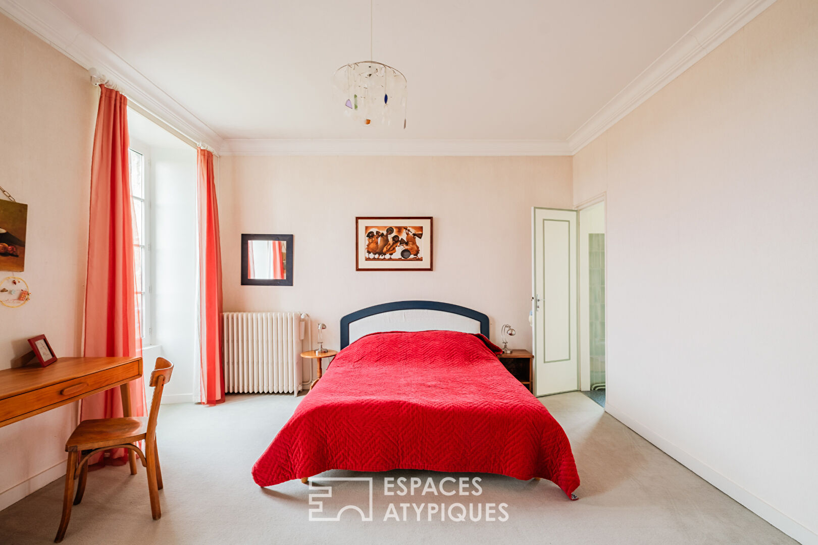 Le jardin arboré sur deux niveaux et les murs de pierre confèrent à cette propriété un charme unique. L’ensemble s’inscrit parfaitement dans l’ambiance historique de Parthenay, tout en offrant un havre de paix.