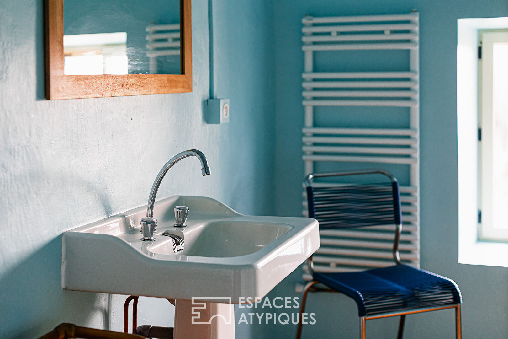 Le premier étage s’articule autour d’un vaste palier qui dessert deux chambres à la décoration authentique. Une salle de bains centrale offre un double accès pour rejoindre une nouvelle partie nuit avec une salle de bains privative. De cet espace nuit se dégage une atmosphère apaisante, préservant le charme de l’ancien.