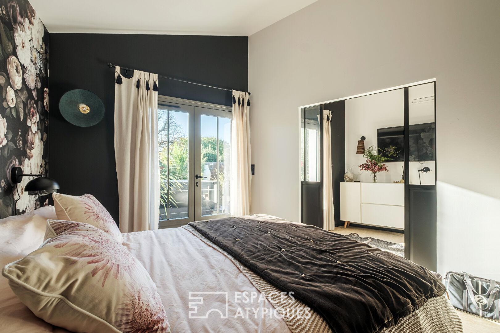 L’espace parental, véritable cocon, se distingue par son atmosphère intime et enveloppante : une chambre ouverte sur le jardin, un bureau/dressing soigneusement intégré, ainsi qu’une élégante salle d’eau composent cet ensemble pensé comme une bulle de sérénité.