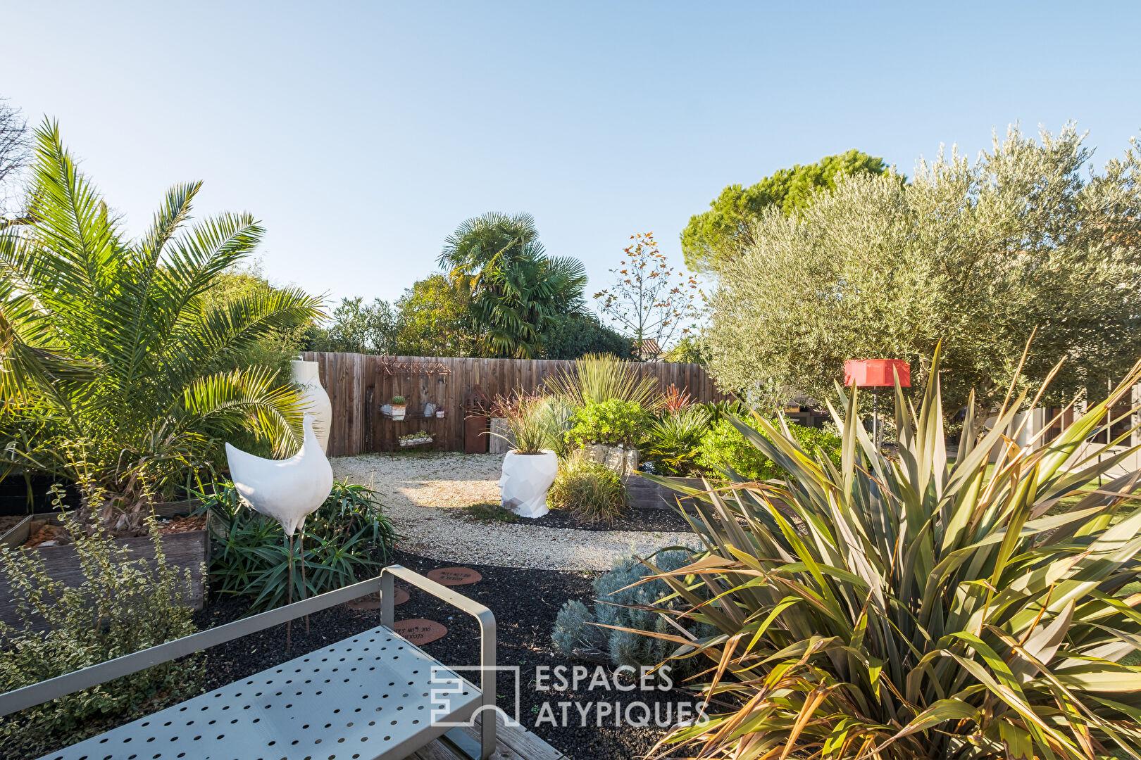 À l’extérieur, les espaces ont été dessinés comme autant de lieux de vie : coin détente à l’ombre pour les journées estivales et zone couverte idéale pour une cuisine d’été et des réceptions conviviales entre amis ou en famille.