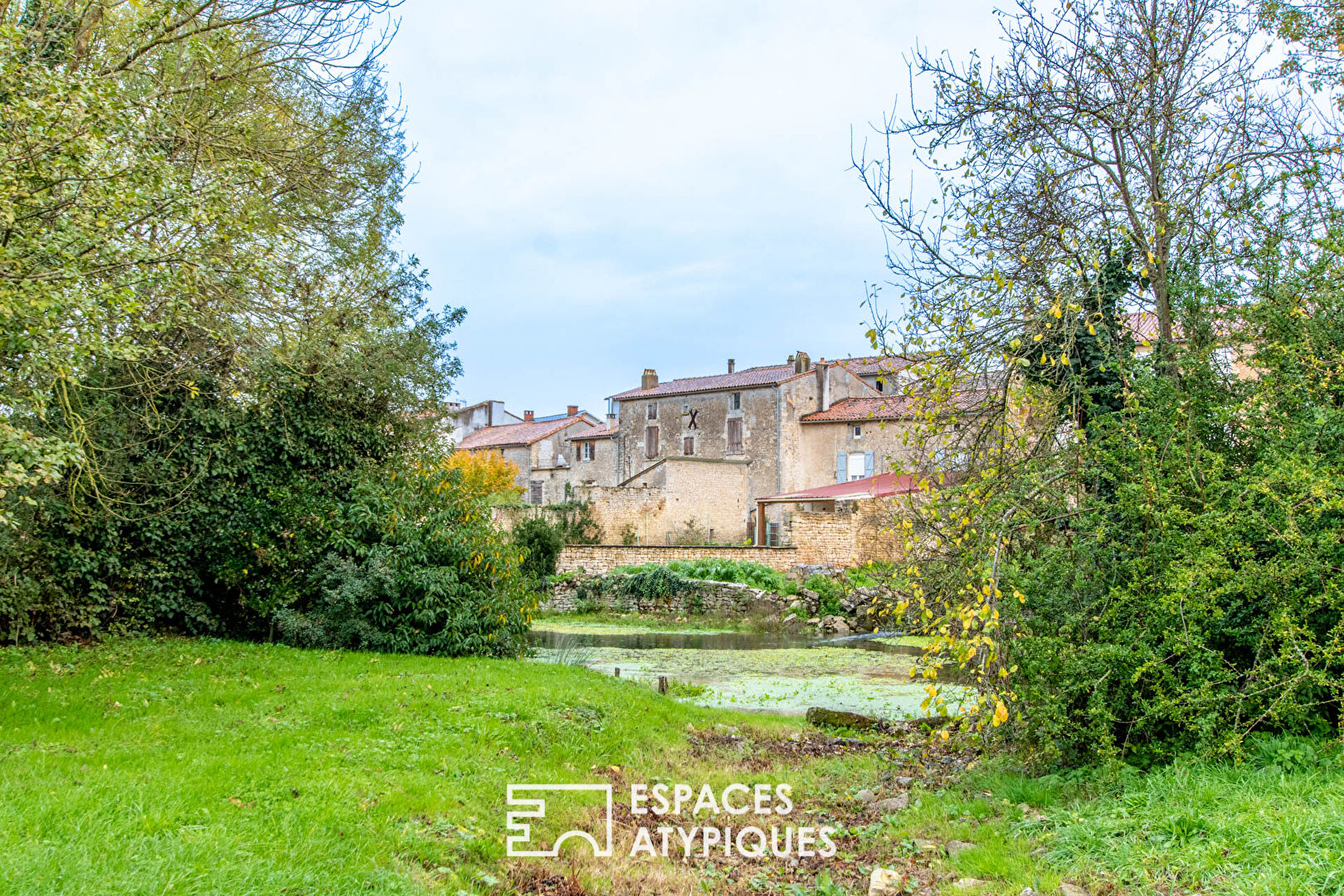 En lisière du village de Pamproux, au coeur du Haut Val de Sèvre, cette ancienne métairie en pierre d’environ 262 m² prend place sur une parcelle de plus de 2700 m².