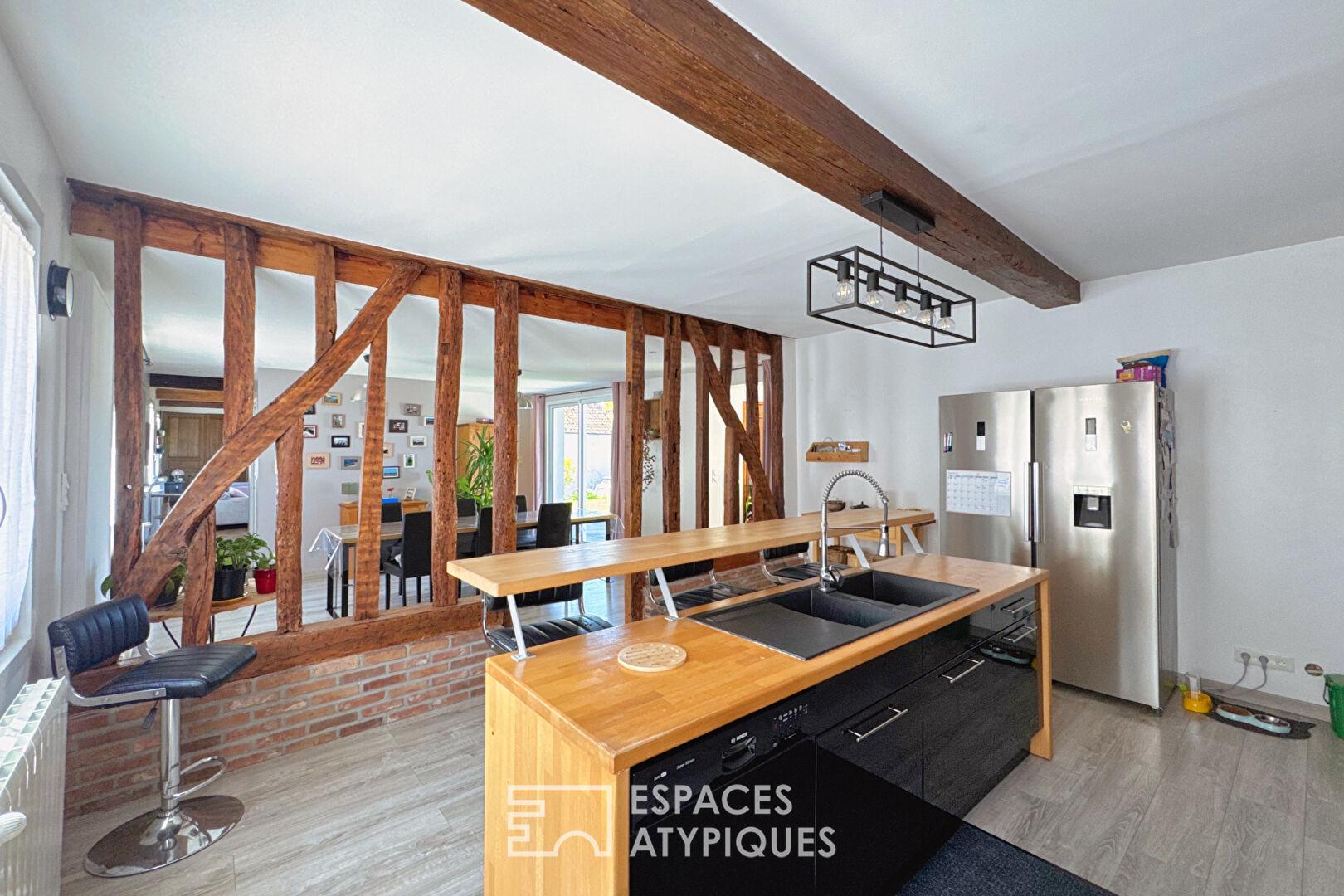 Maison avec gîte aménagé dans une grange à colombages et dépendances, proche Amiens