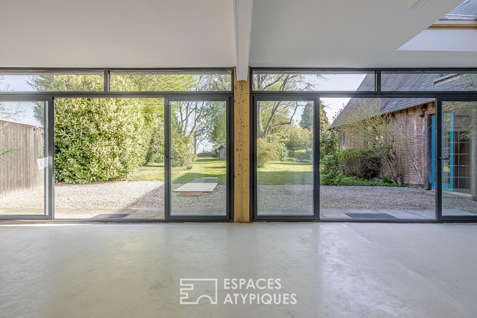 Derrière la porte cochère se cache un secret bien gardé : une longère de caractère où le charme de l’ancien rencontre des volumes insoupçonnés.