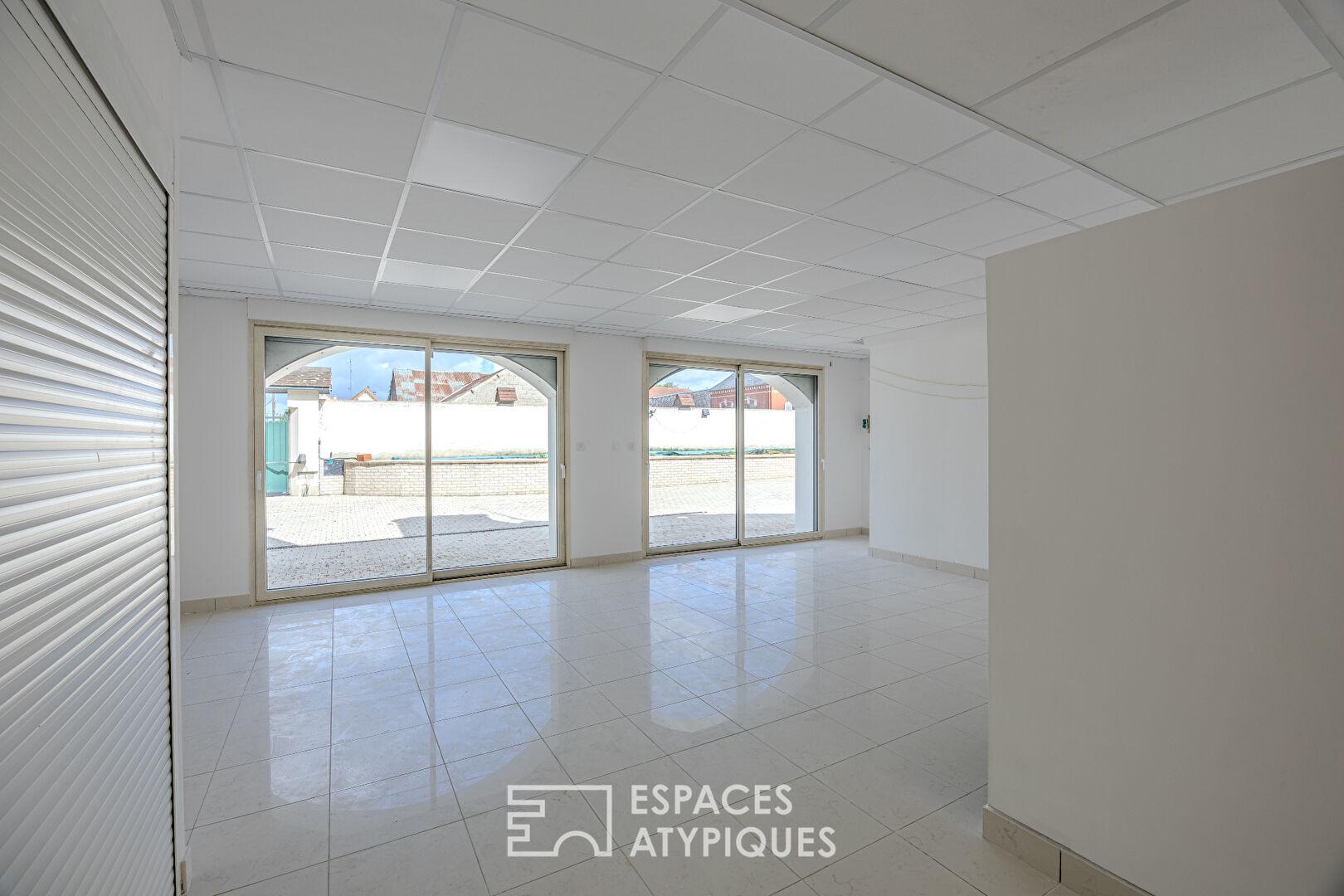 Dans le prolongement mais indépendante de la maison principale, une jolie maison / bureau de 50 m² est prête à accueillir votre activité, vos amis ou vos futurs hôtes. Elle dispose d’un séjour ouvert avec kitchenette, de deux chambres et d’une salle d’eau, assurant une parfaite autonomie et intimité. Modulable en 2 bureaux et salle d’attente. Le grand parking sécurisé avec son accès indépendant est un atout essentiel pour l’accueil et le confort de futurs patients ou clients.
