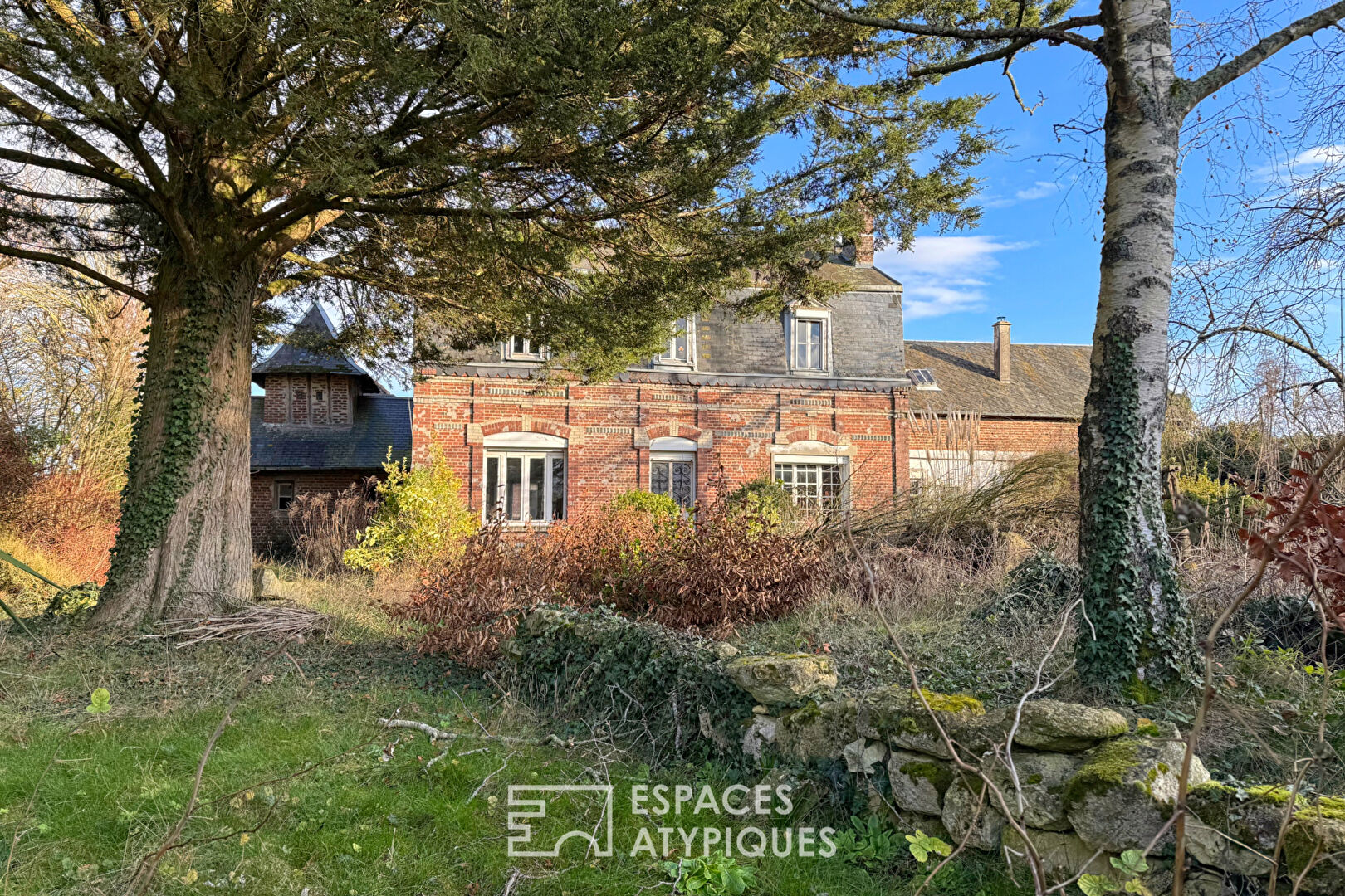 À l’abri des regards, au cœur du village de Proyart, cet ancien corps de ferme en brique s’organise autour d’une vaste cour fermée qui préserve l’intimité des lieux. Derrière les façades traditionnelles, le jardin arboré prolonge la propriété dans une atmosphère plus bucolique.