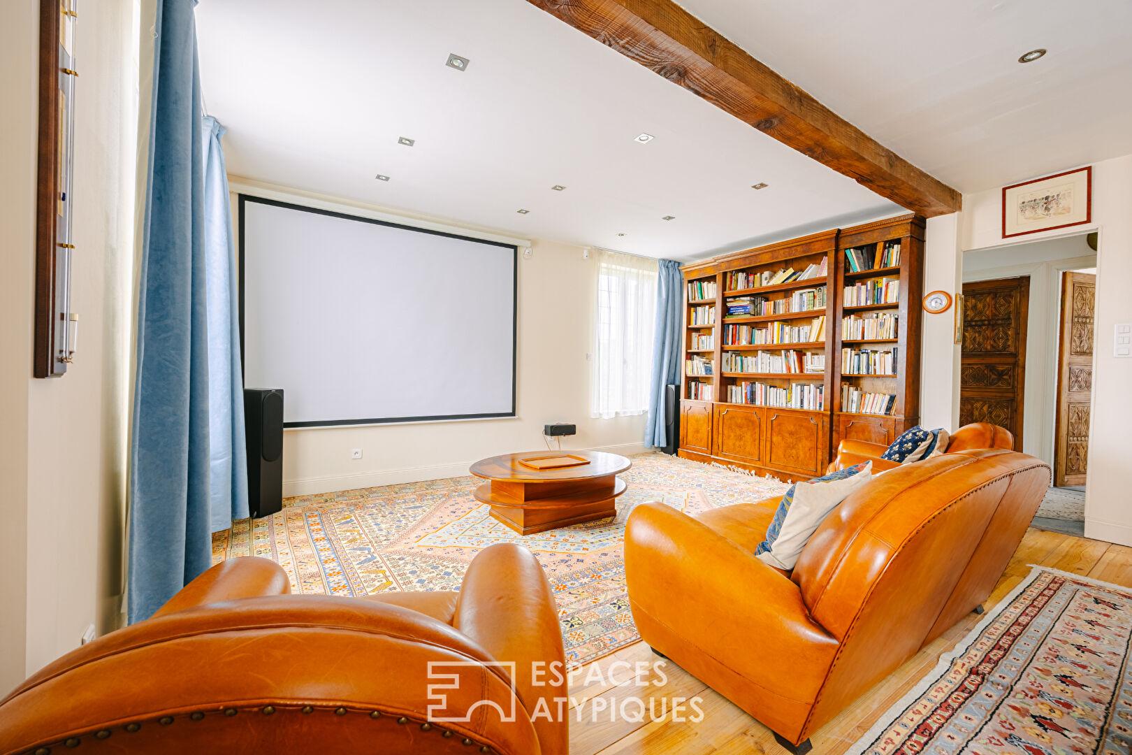 Le rez-de-chaussée accueille deux salons lumineux dont un tourné vers le jardin, une vaste salle à manger idéale pour recevoir, ainsi qu’une cuisine ouverte aménagée et équipée avec un accès direct à l’extérieur. Une entrée soignée et des toilettes invités complètent ce niveau. À l’étage, deux chambres confortables se partagent une salle de bains, accompagnées d’un grand bureau pouvant faire office de troisième chambre. Le dernier niveau est entièrement dédié à une suite parentale généreuse, comprenant un dressing, une salle de bains avec douche à l’italienne et des toilettes.