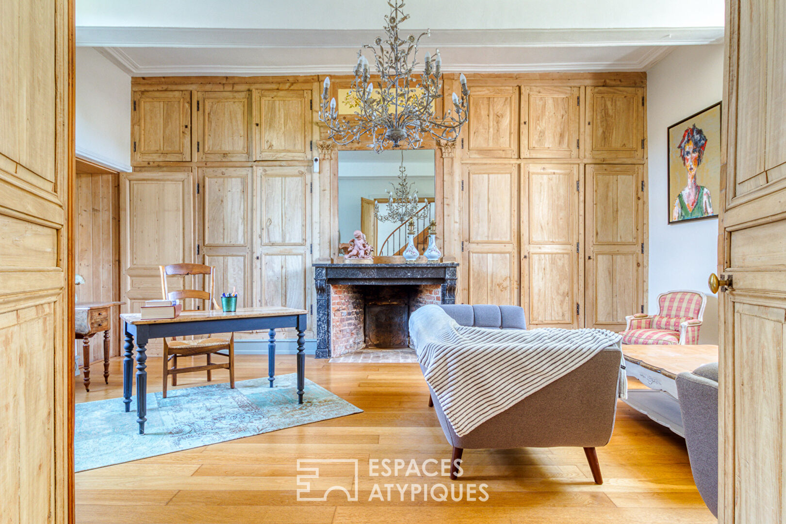 Dès que le regard se pose sur ce bâtiment, l’alliage distinctif de briques et de pierres nous captive immédiatement. Cependant, c’est à l’entrée que le charme opère vraiment, là où la lumière inonde les volumes. Le soleil traverse ses pièces de vie, apportant une ambiance chaleureuse et soulignant le volume et la hauteur sous plafond. De nombreux éléments anciens, tels que les cheminées, les boiseries, les parquets et l’escalier, ont été conservés, mettant en valeur le caractère authentique de la demeure. Une touche de modernité et de confort, également présente, confère un charme unique à ce lieu emblématique.