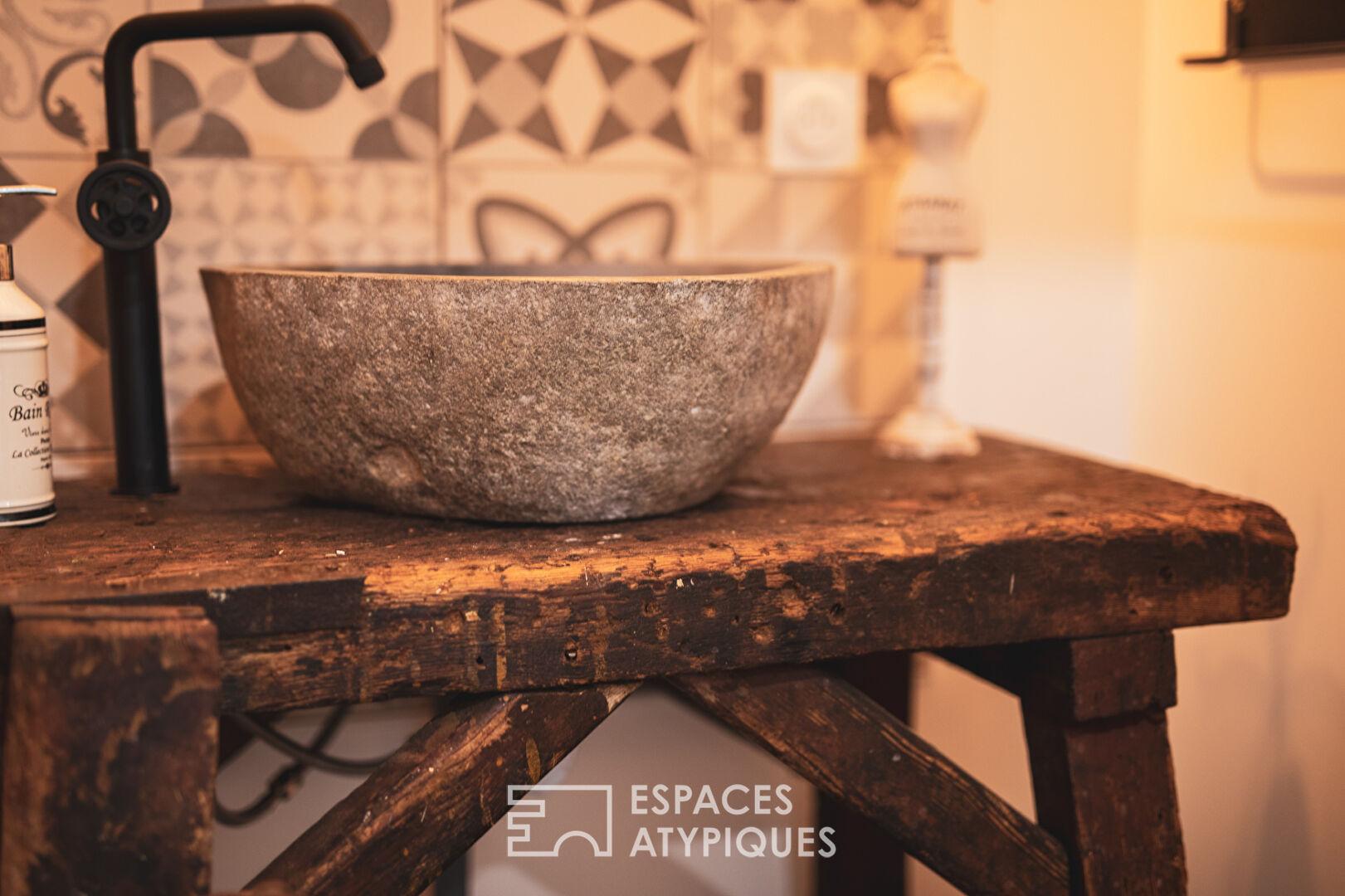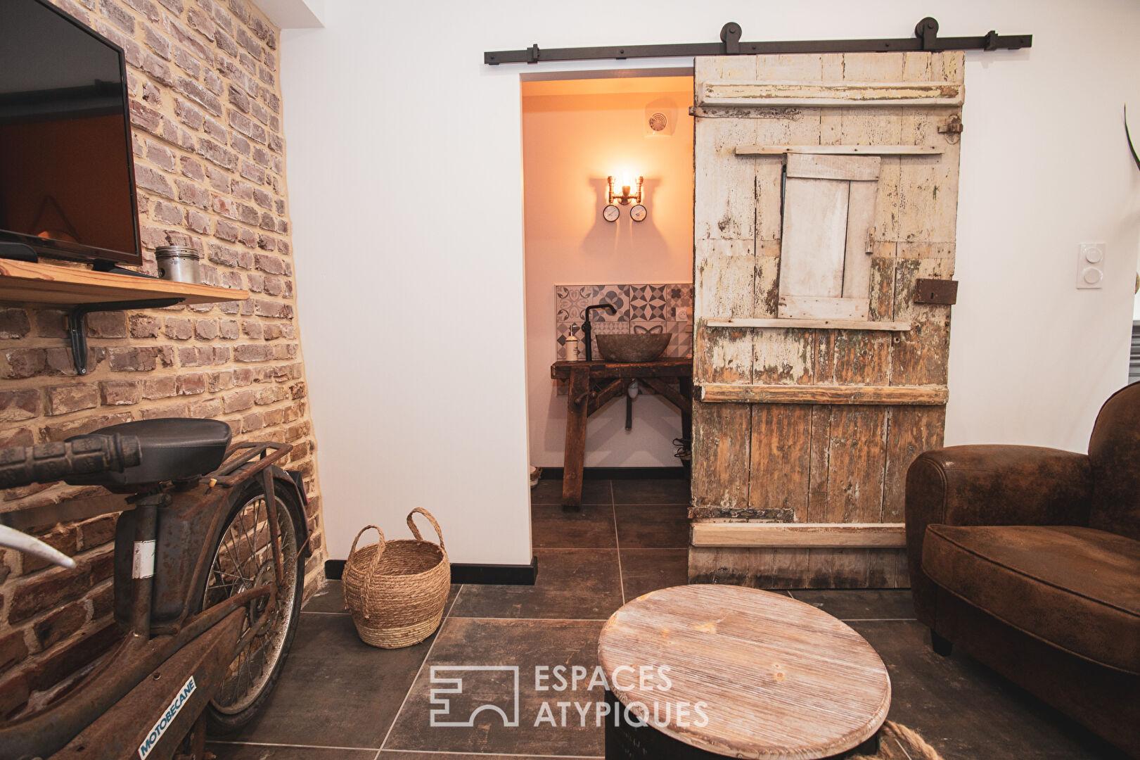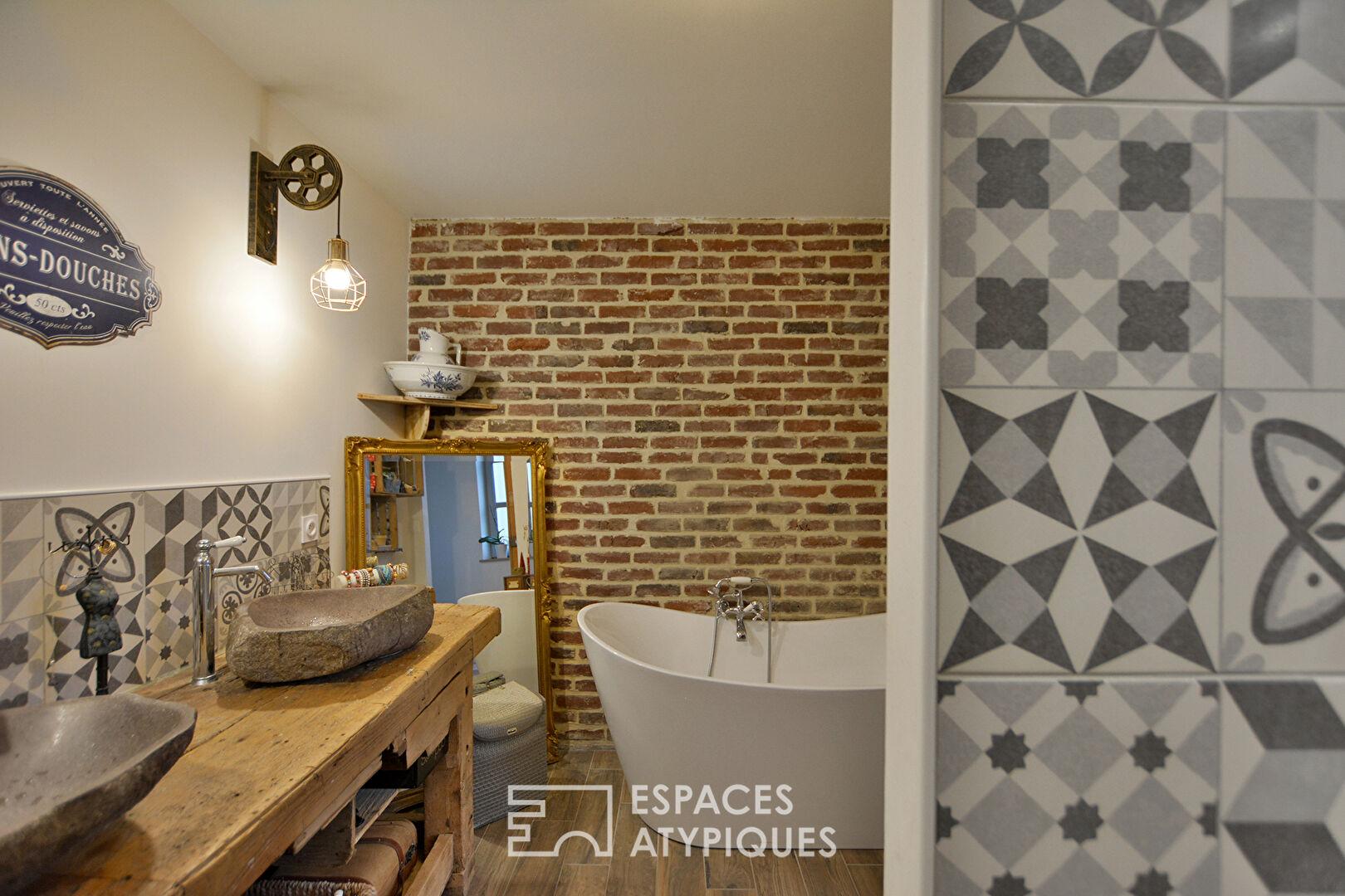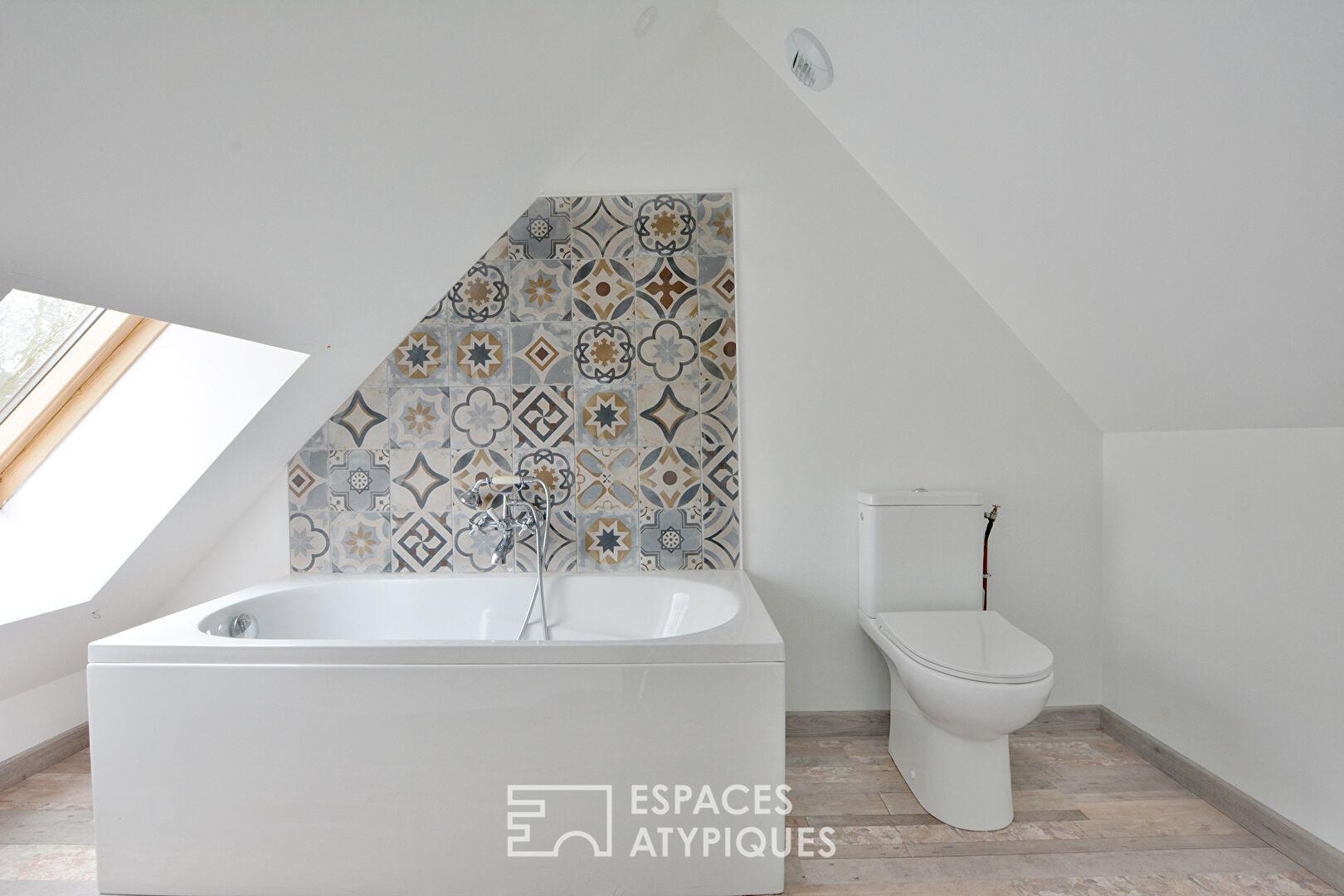 Sur le même niveau, une salle de bain rénovée avec gout bénéficie d’une douche et d’une baignoire. Enfin un WC avec coin buanderie complète le rez de chaussée.