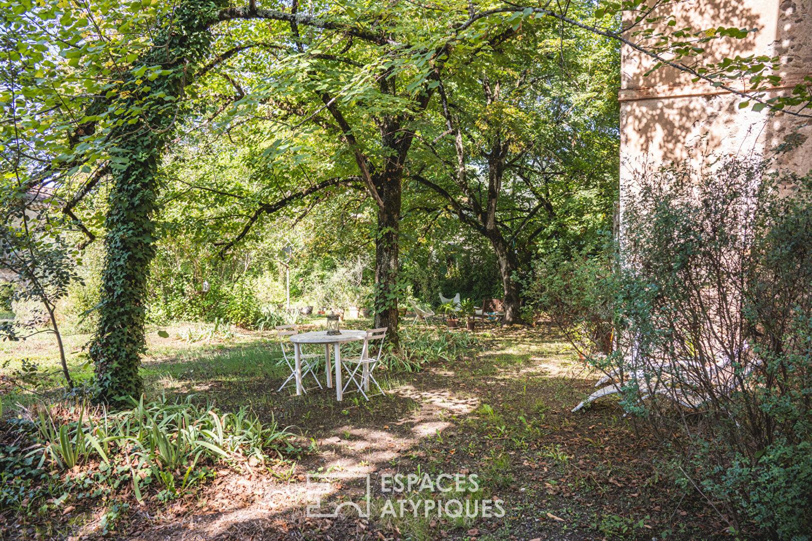 Le jardin central, intime et arboré, agit comme un véritable havre de paix au cœur de la propriété. Deux dépendances y prennent place, prêtes à accueillir des espaces indépendants : un atelier, un studio de création, ou encore des logements touristiques.
