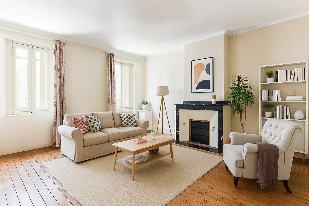 Les espaces de réception se composent d’un séjour raffiné, d’une salle à manger chaleureuse et d’une cuisine indépendante, formant un ensemble fluide, aujourd’hui prêt à être repensé et remis au goût du jour pour répondre aux usages contemporains.