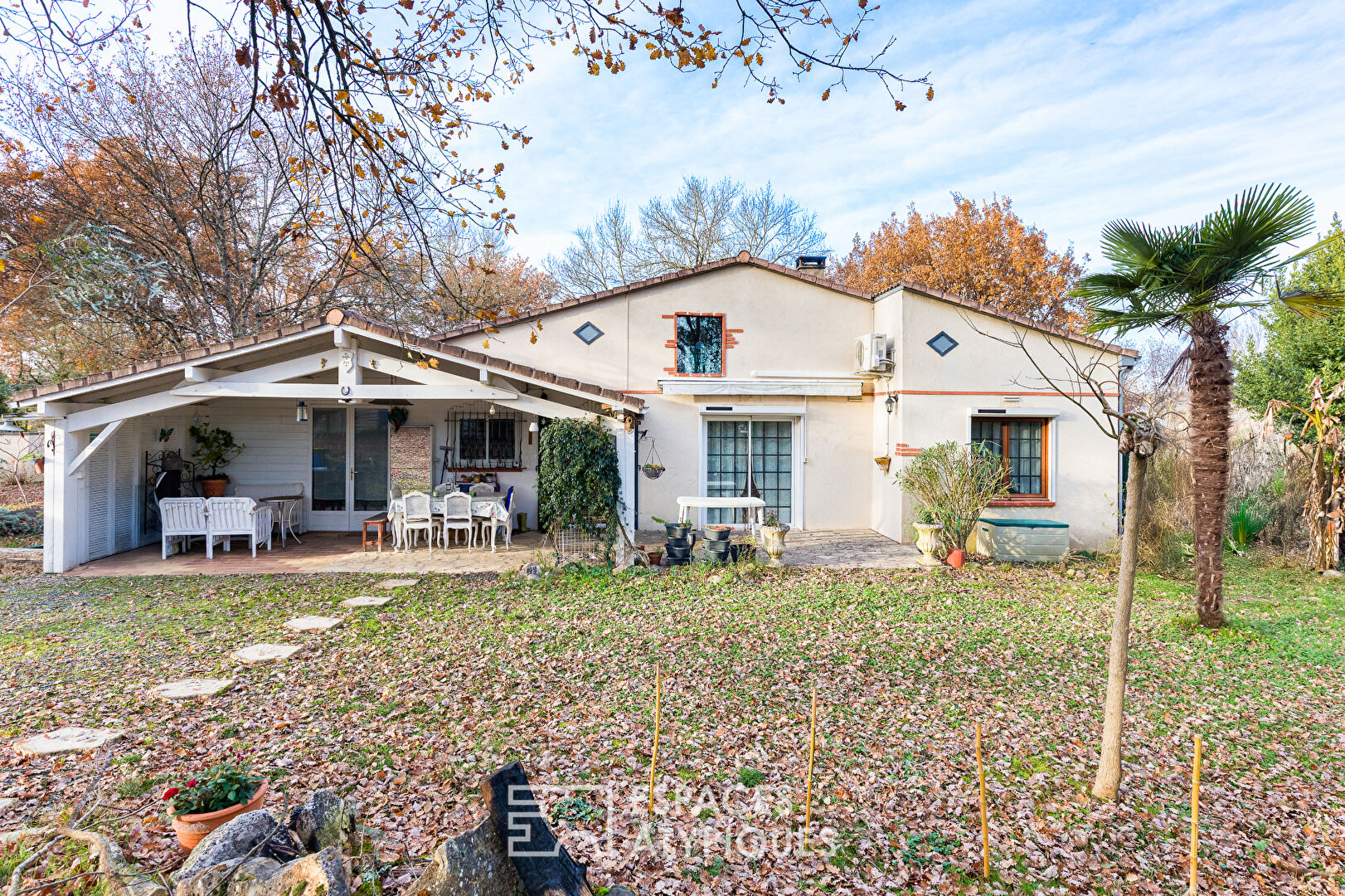 À l’extérieur, le terrain clos et arboré invite à la détente et à la déconnexion. Les aménagements extérieurs, pensés pour profiter pleinement des beaux jours, accueillent un jacuzzi, une piscine hors sol et des espaces ombragés, en parfaite harmonie avec la nature environnante. Un carport complète l’ensemble.