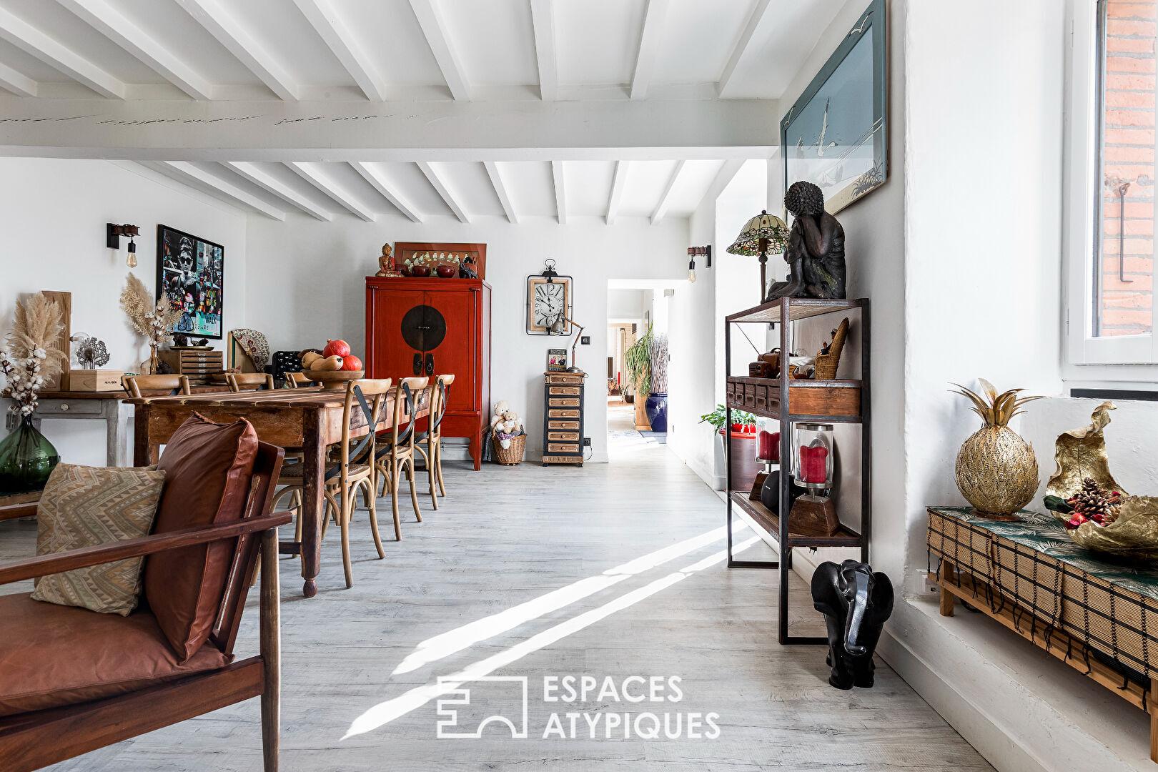Chaque espace cultive le charme d’une rénovation soignée où matériaux bruts et touches contemporaines s’équilibrent harmonieusement.